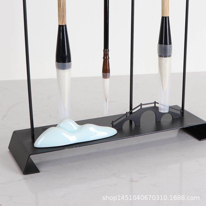 新中式书房桌面摆件毛笔架禅意样板房酒店民宿茶室书桌软装布置