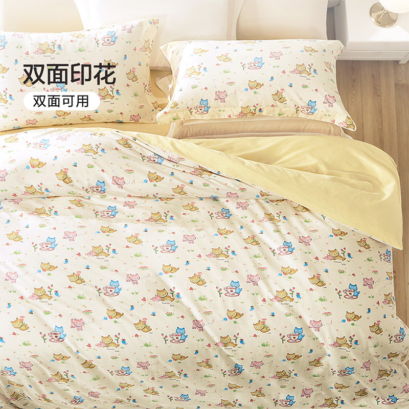 无印良品全棉四件套学生宿舍纯棉卡通儿童被套床单三件套床上用品