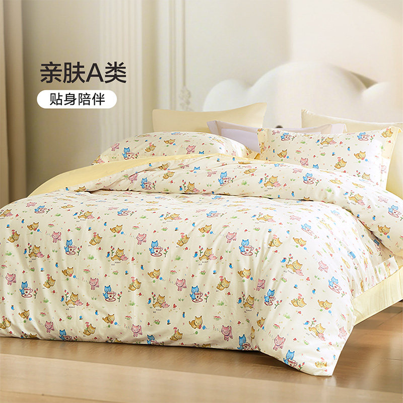 富安娜家纺儿童四件套A类纯棉全棉卡通学生宿舍被套床单床上用品