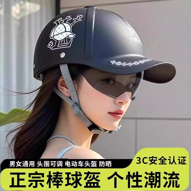 新国标3C认证鸭舌帽头盔棒球盔电动车男女四季通用夏季防晒安全帽
