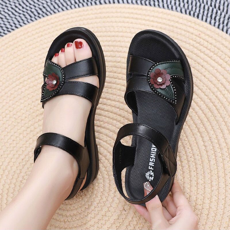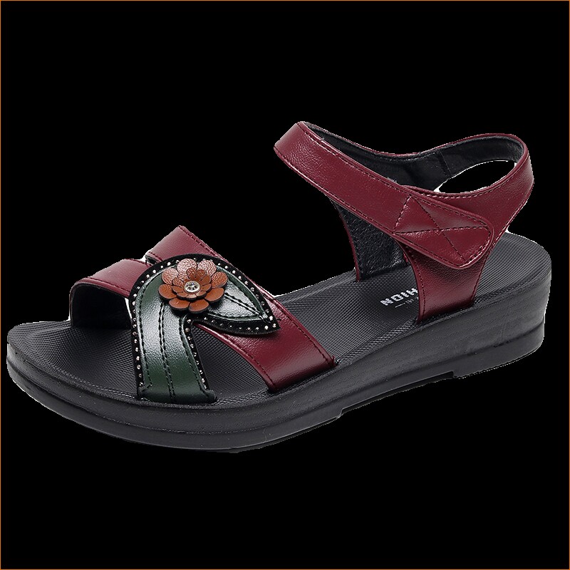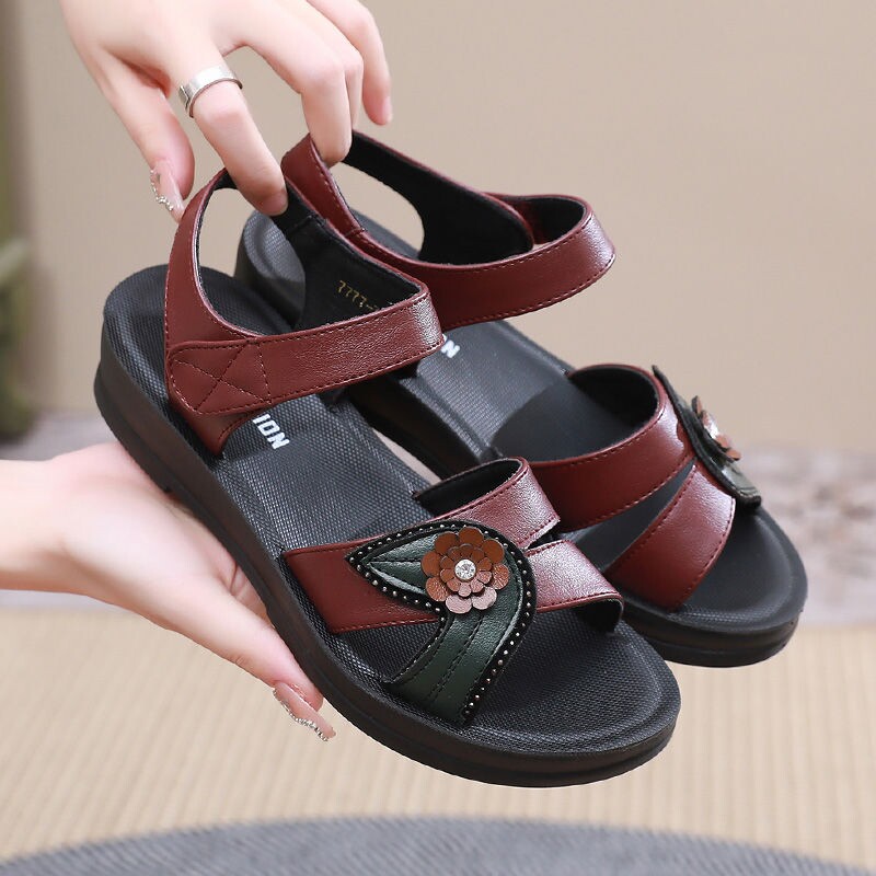 妈妈鞋平底软底防滑凉鞋女夏季新款中老年坡跟奶奶鞋平底舒适鞋子