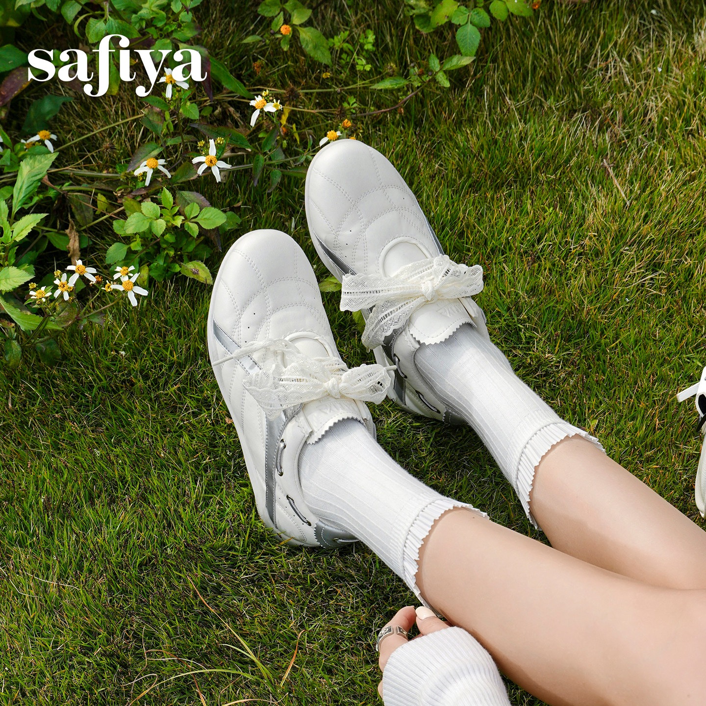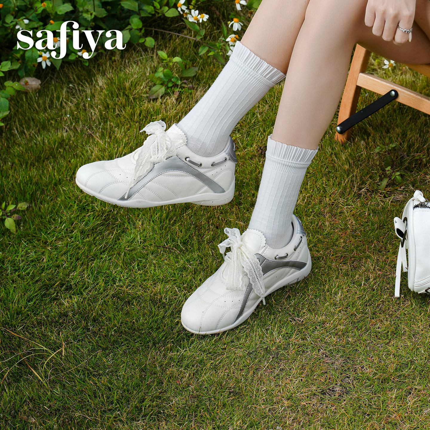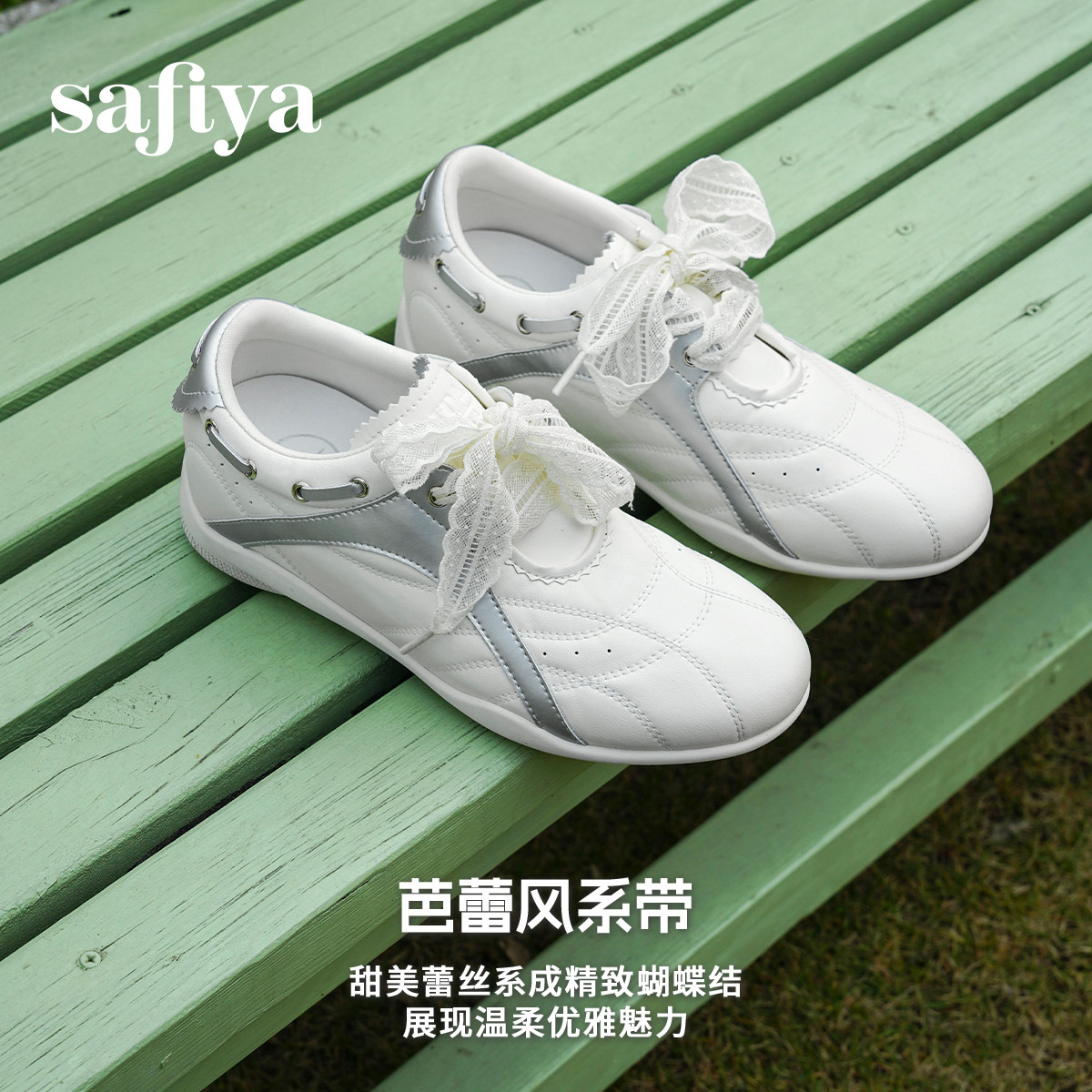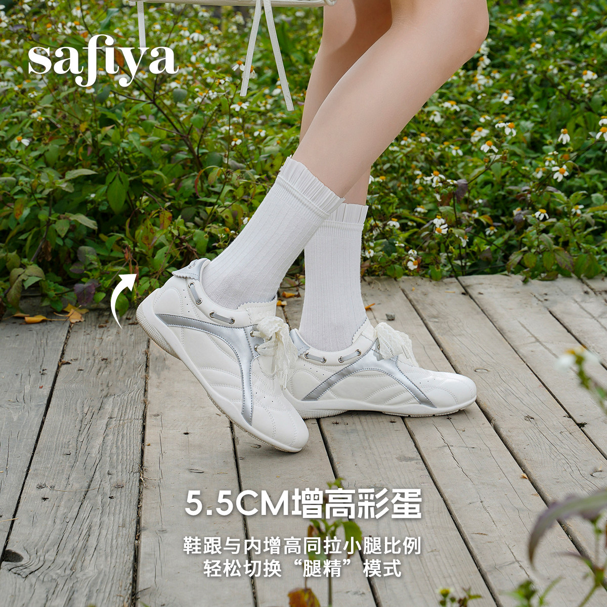 索菲娅2026年春季新品芭蕾风蕾丝系带拼色百搭内增高运动鞋休闲鞋