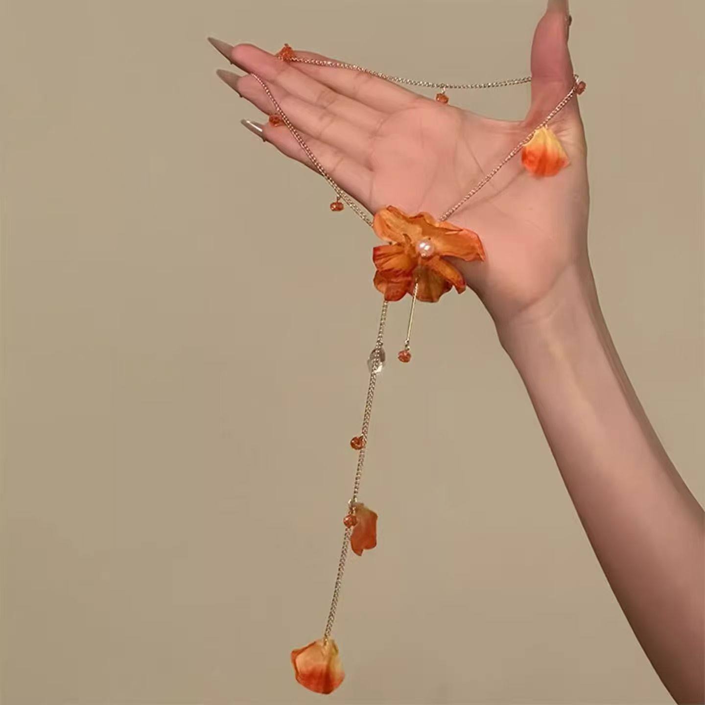 【橘洲落日】氛围感花朵项链2025新款高颜值花瓣流苏锁骨链choker
