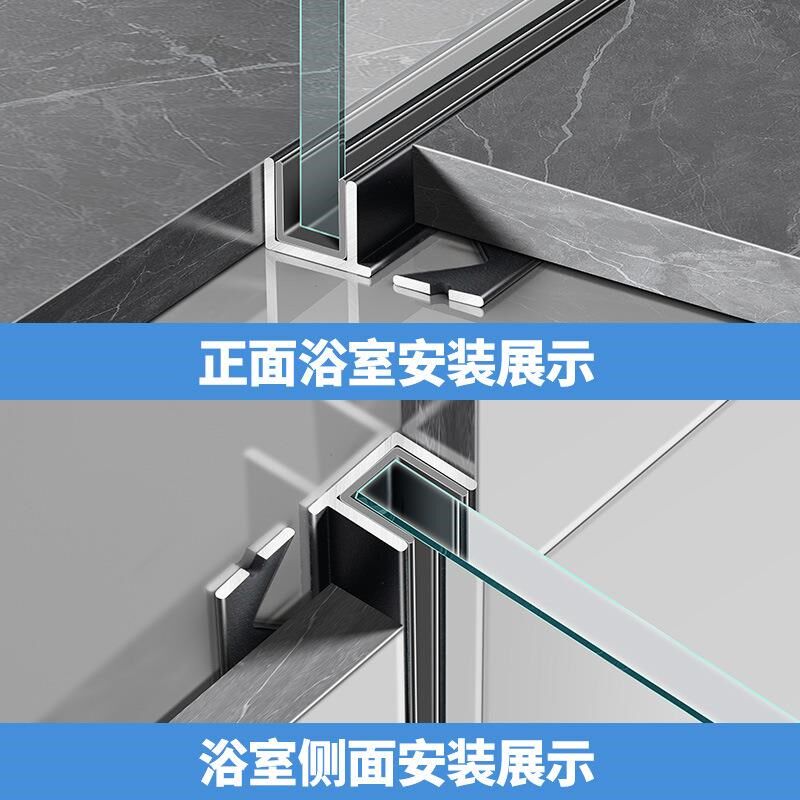 铝合金F型玻璃卡槽下沉式淋浴房隔断预埋件卫生间U型槽浴室f型材