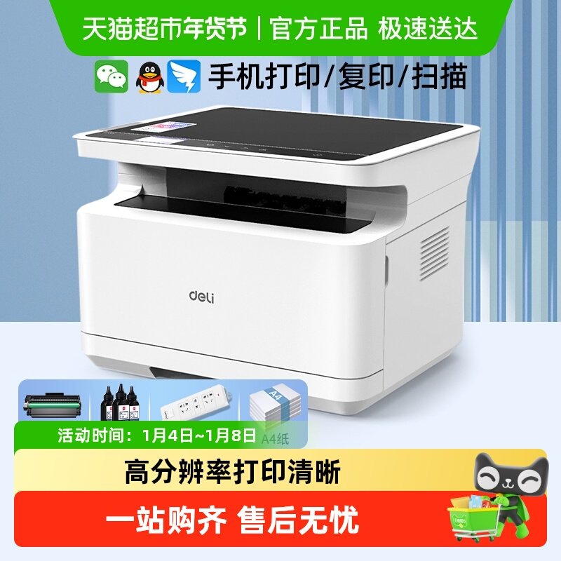 得力黑白激光打印机双面复印扫描一体机A4办公室网络wifi家用小型