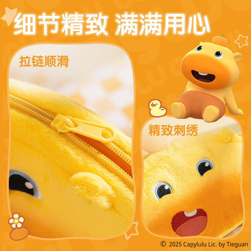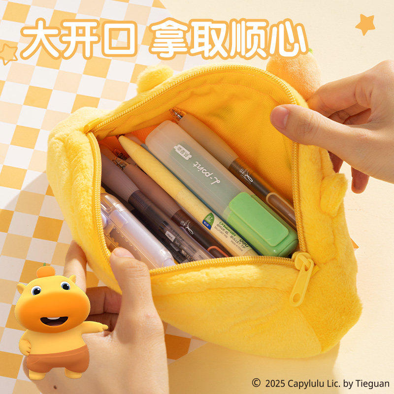 得力水豚噜噜系列毛绒笔袋趣味抽拉便携铅笔盒学生保暖女生化妆包