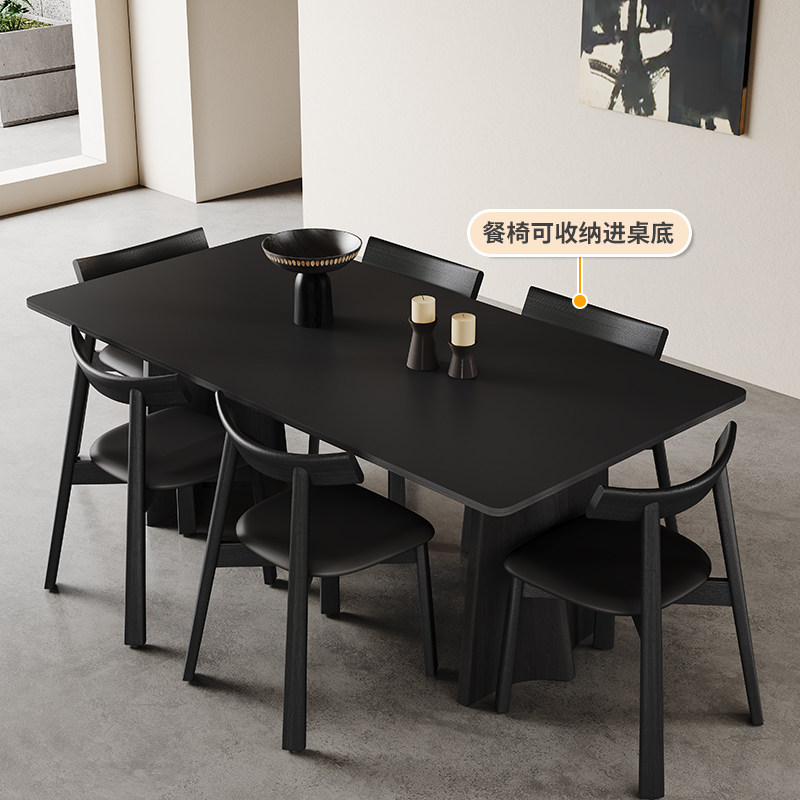 复古黑色岩板餐桌椅小户型家用现代简约法式侘寂风长方形实木餐桌