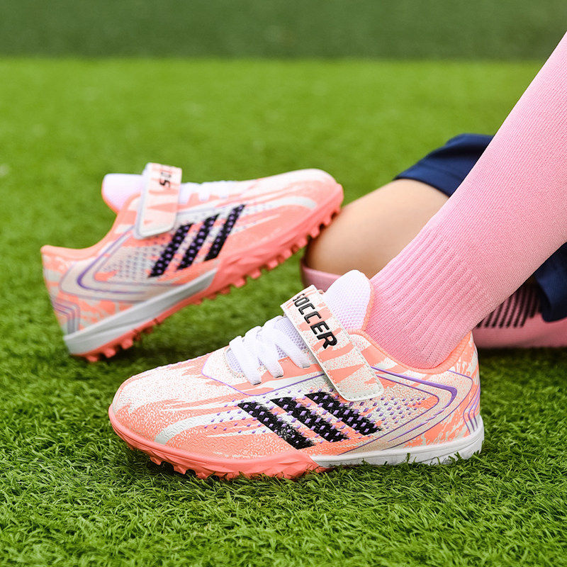 C罗刺客女童透气儿童足球鞋男童魔术贴碎钉TF学生比赛草坪训练鞋