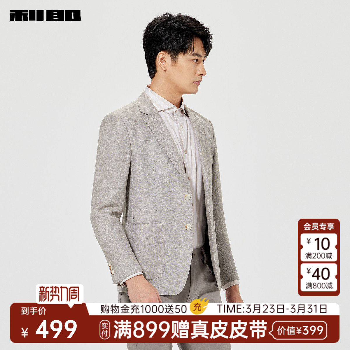 【亚麻汉麻】利郎官方 休闲西服男士春季新款薄款纯色商务外套男