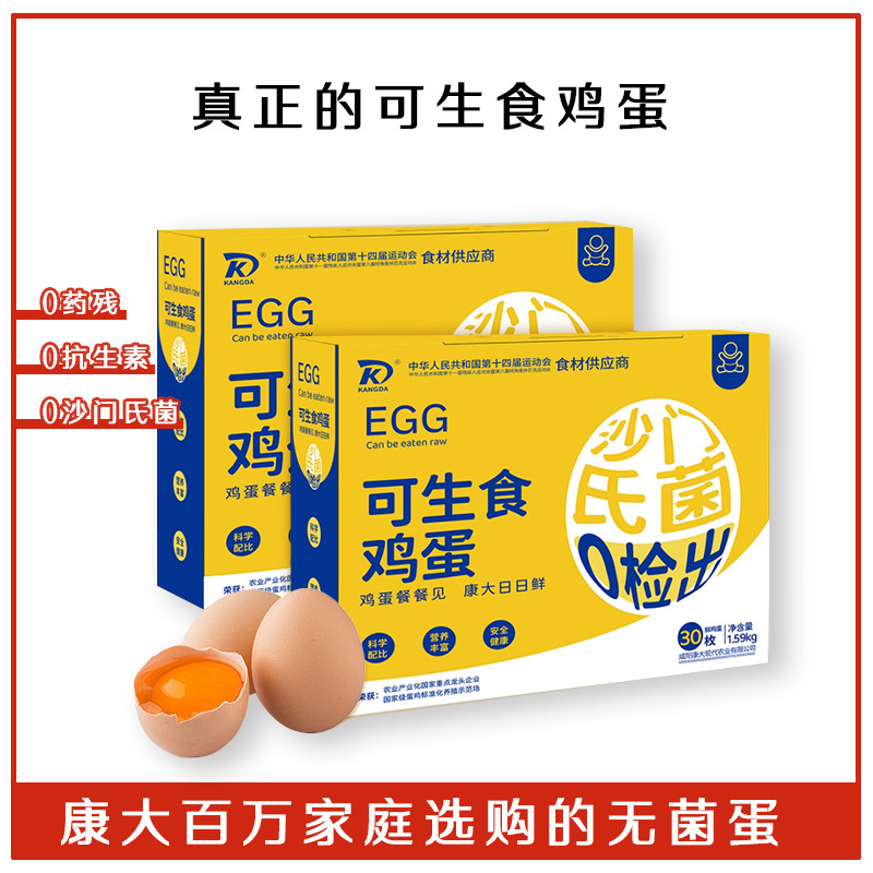 康大鲜鸡蛋可生食鲜鸡蛋无沙门氏菌高品质新鲜鸡蛋30枚鲜鸡蛋礼盒