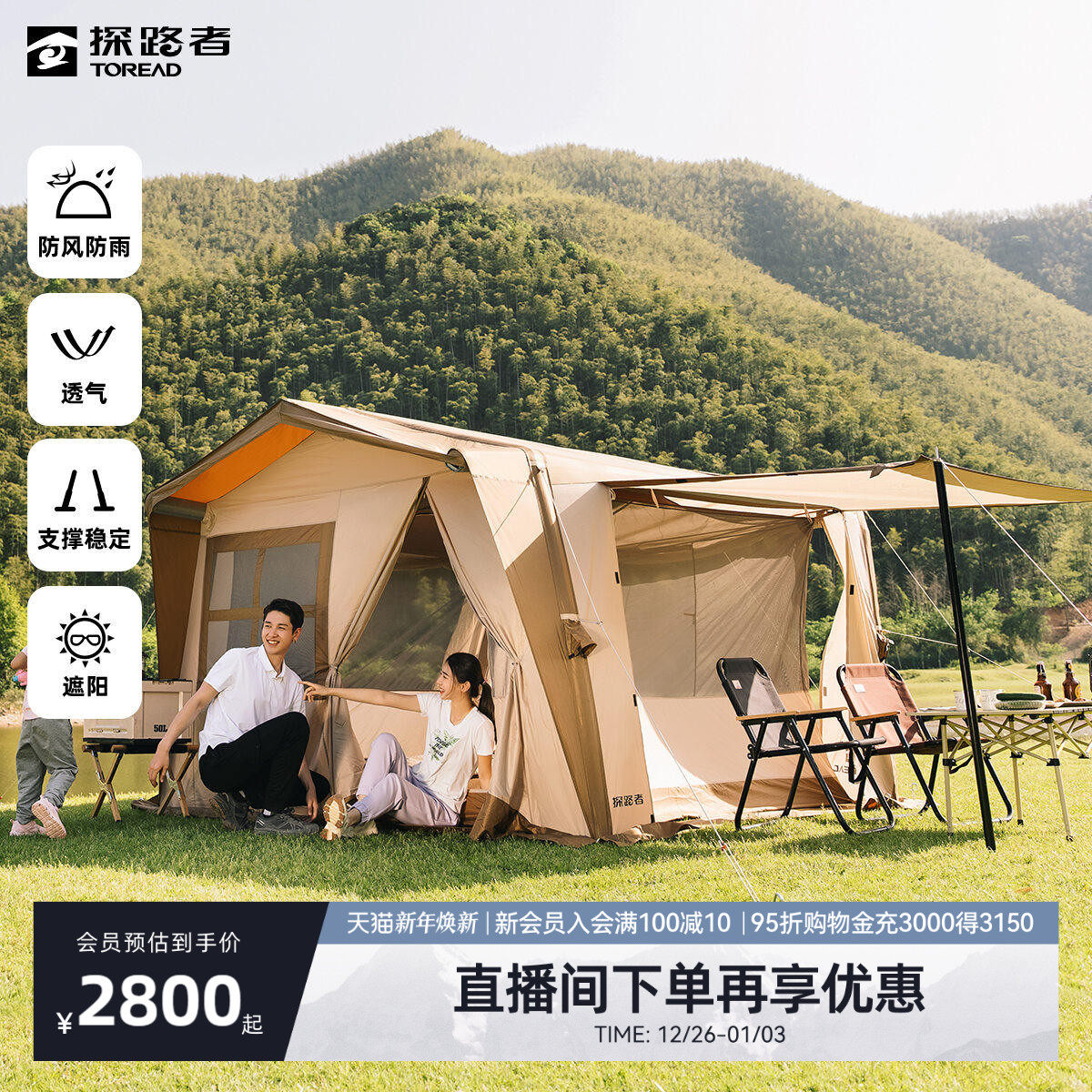 探路者田园居三人四人帐篷冬季户外防风防雨野外精致露营充气帐篷