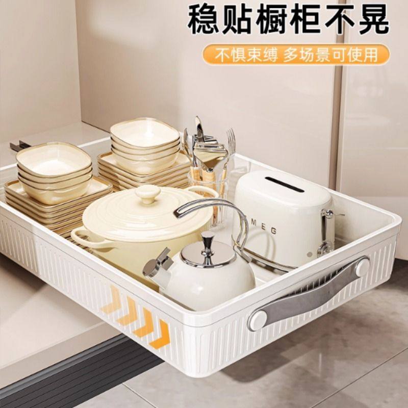 橱柜抽屉式拉篮厨房轨道抽拉式置物架深柜下水槽柜内收纳架免打孔
