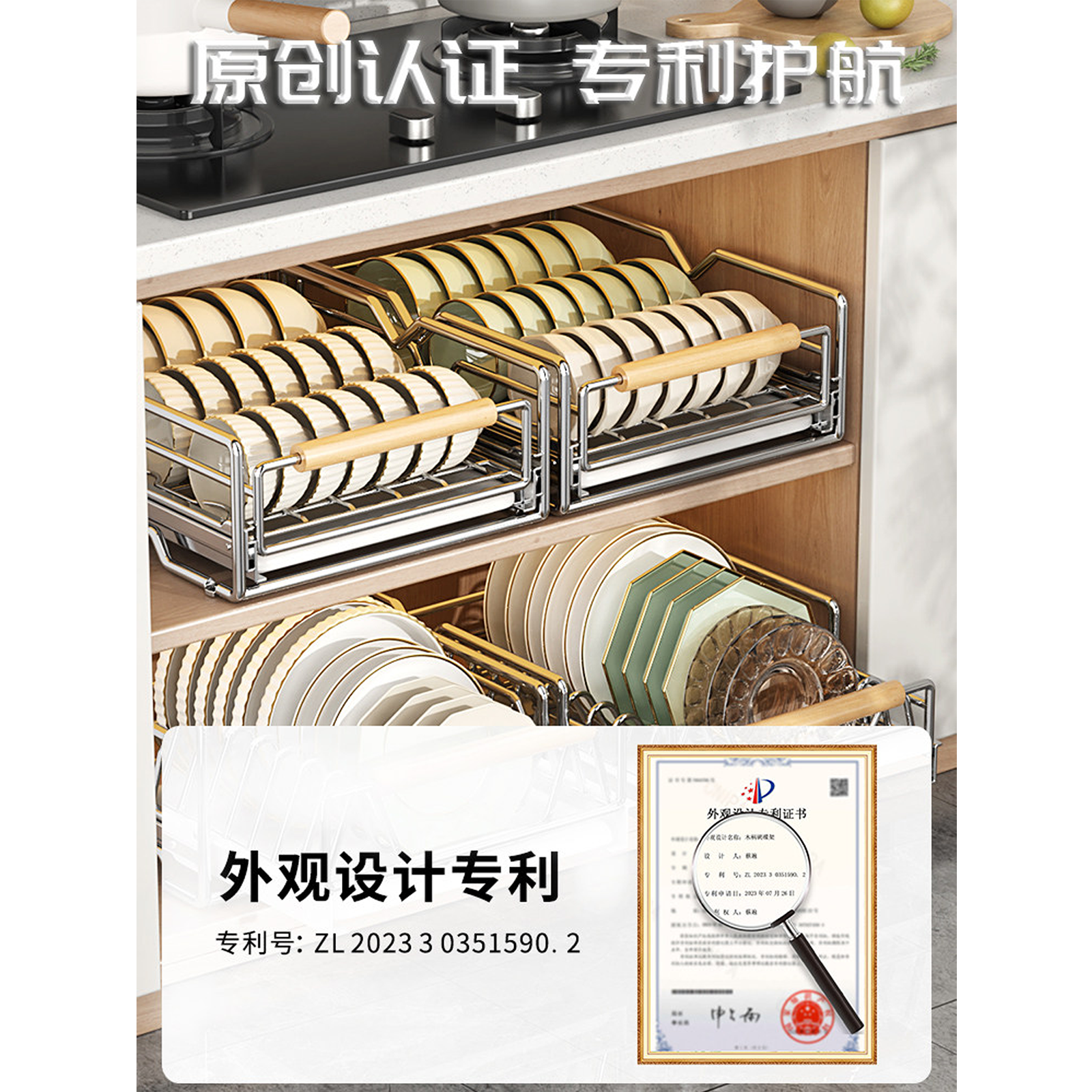 不锈钢碗碟收纳架厨房橱柜内置物架抽屉式拉篮抽拉碗柜盘沥水碗架