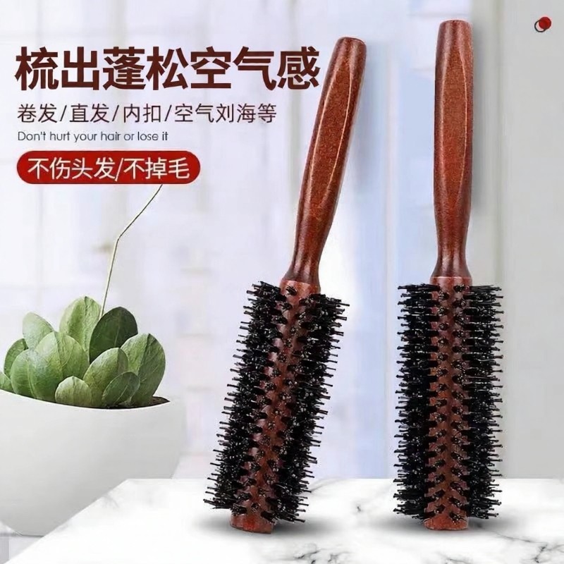 卷发梳子猪鬃毛圆筒滚梳内扣长直发吹头发造型卷梳家用发廊专业女