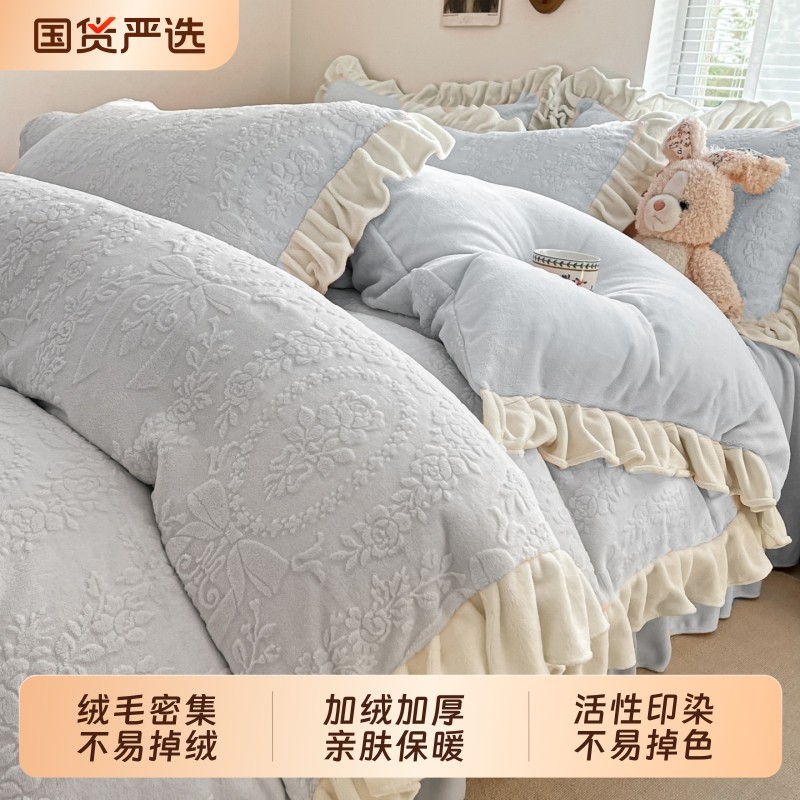 无印良品冬季雕花牛奶绒床上四件套2025新款珊瑚绒床单床品三件套