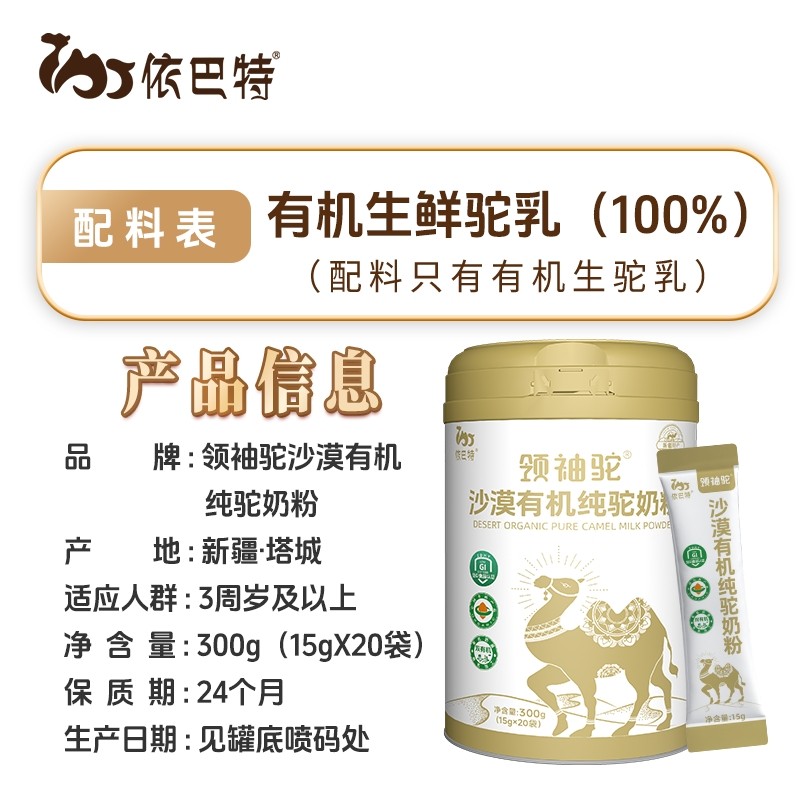 依巴特有机纯骆驼奶新疆驼奶粉成人中老年人有机全脂纯驼奶礼盒装