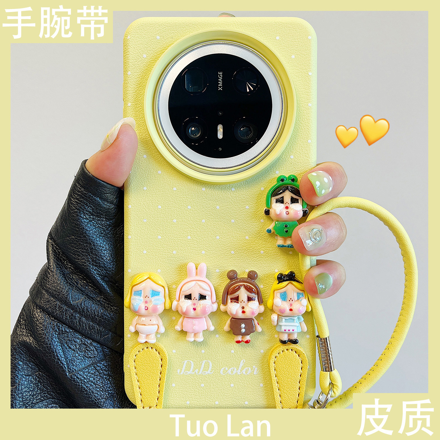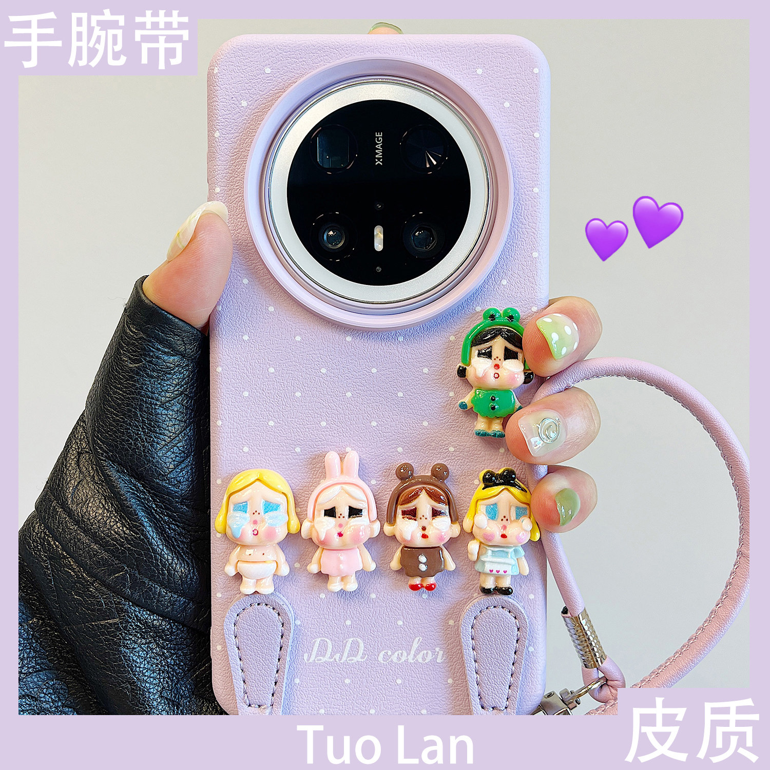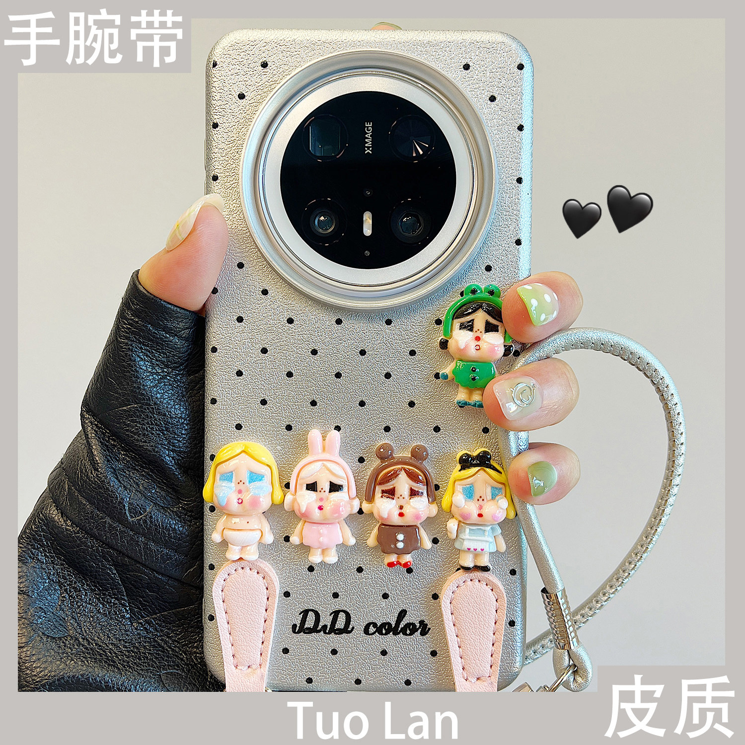 拓岚 适用华为mate70pro+新款手机壳皮纹波点diy立体卡通公仔mate60/50/40pro腕带挂绳pura70/80/60pro防摔女