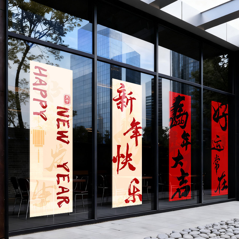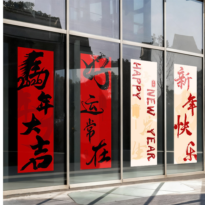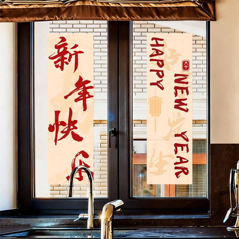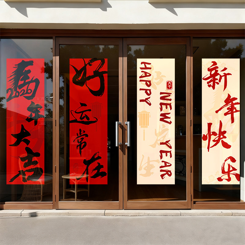新年快乐装饰玻璃贴过年贴纸蝴蝶结腰线马年节日元旦氛围橱窗窗贴