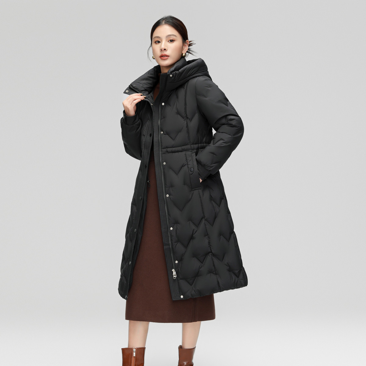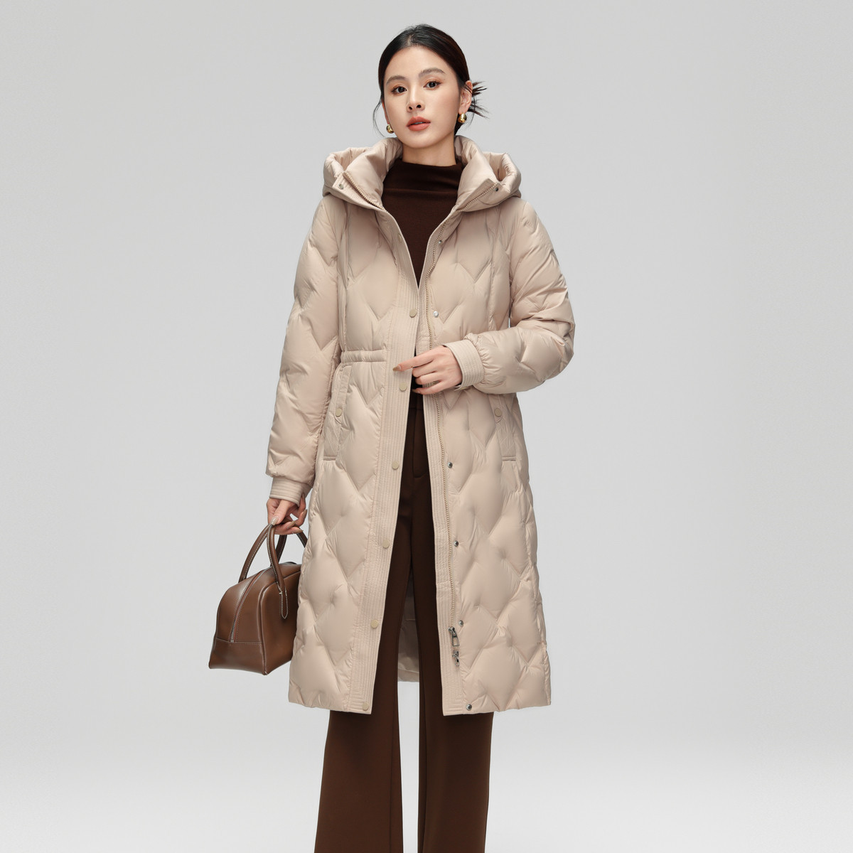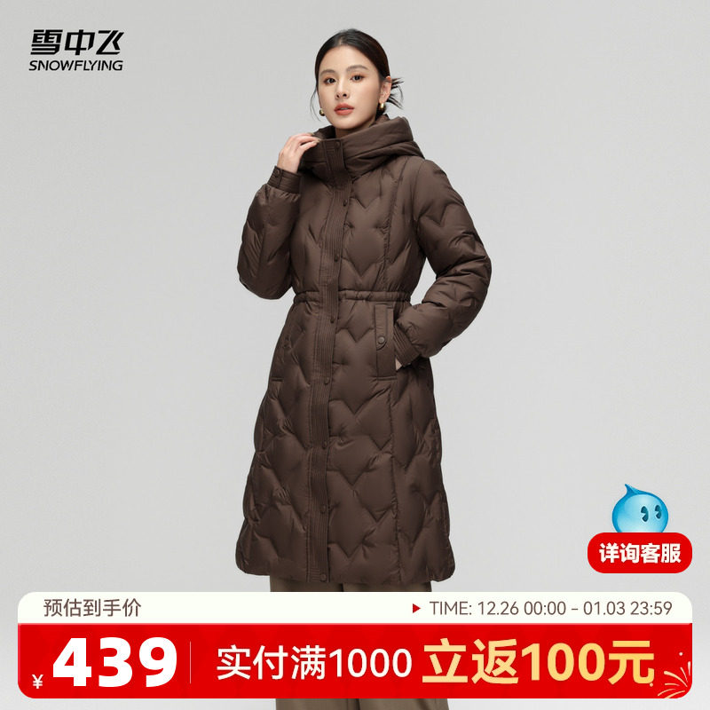 雪中飞2025冬新款女士长款羽绒服淑女百搭连帽加厚时尚妈妈外套