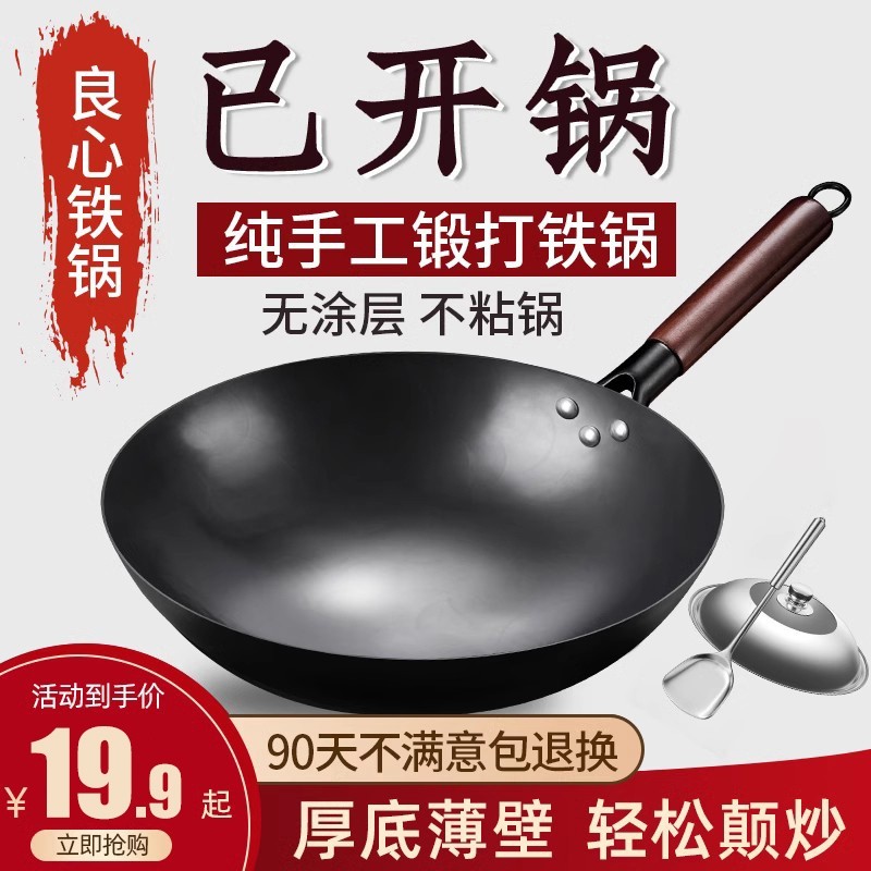 铁锅官方旗舰炒菜锅老式炒锅铁锅家用不粘锅无涂层燃气灶适用