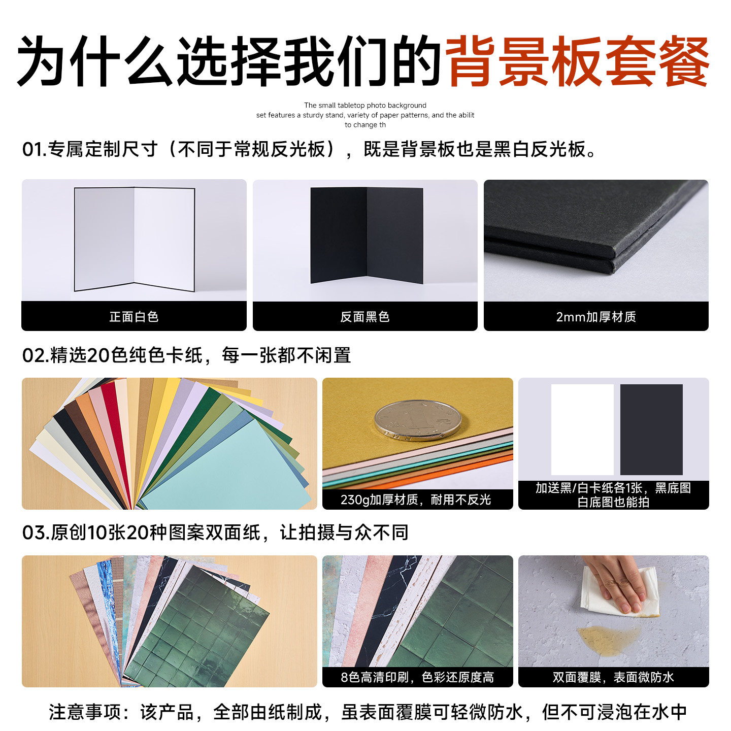 小型桌面拍照背景板造景桌拍白色黑色摄影专用背景纸卡纸古风场景布置珠宝美食产品静物布景ins风拍摄道具