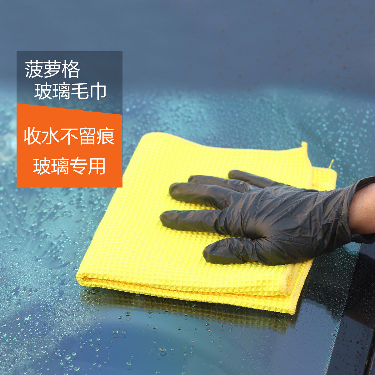 汽车玻璃专用洗车毛巾擦车吸水无痕不留水印抹布菠萝格毛巾华夫格