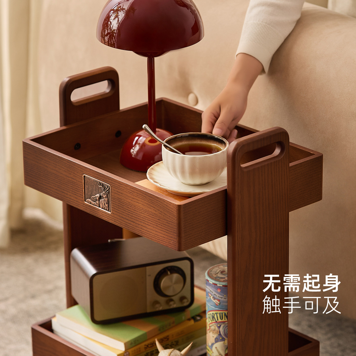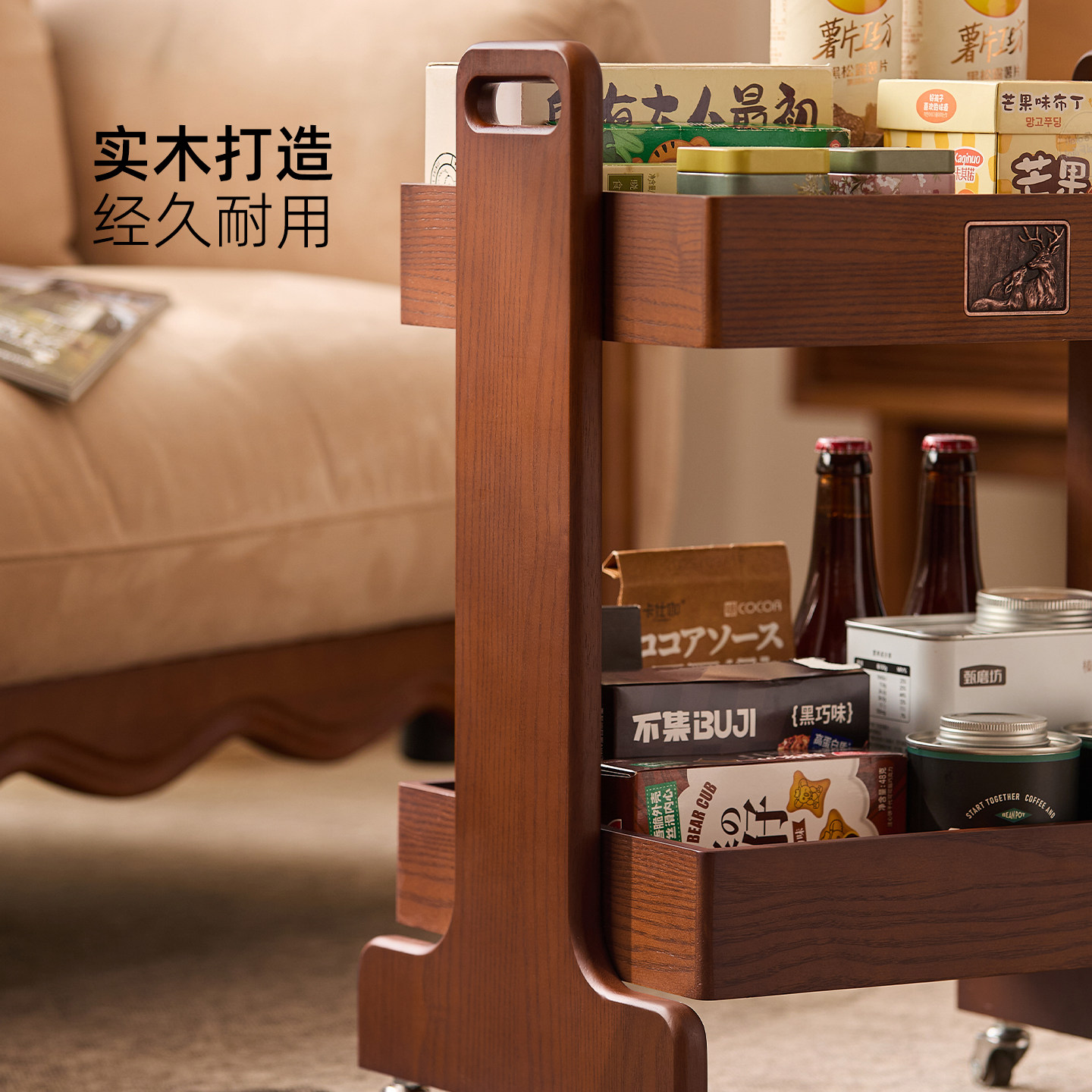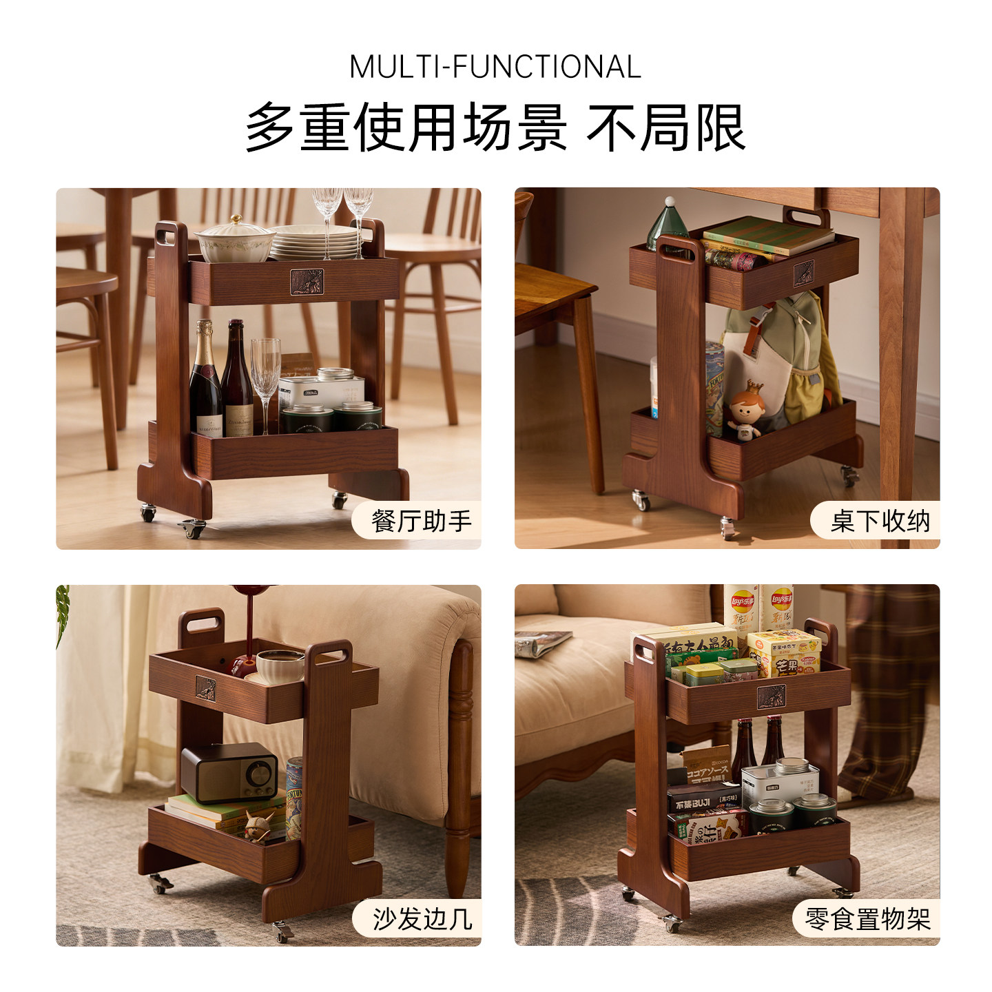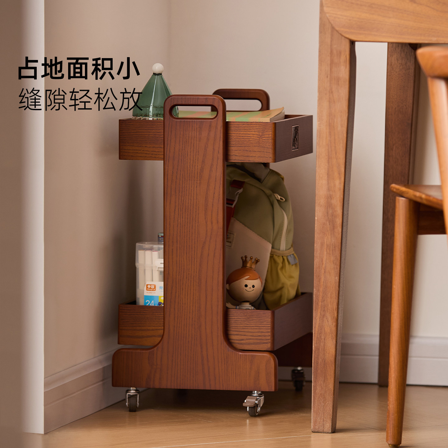 客厅零食置物架实木小推车分层落地收纳架可移动桌下书包杂物架子