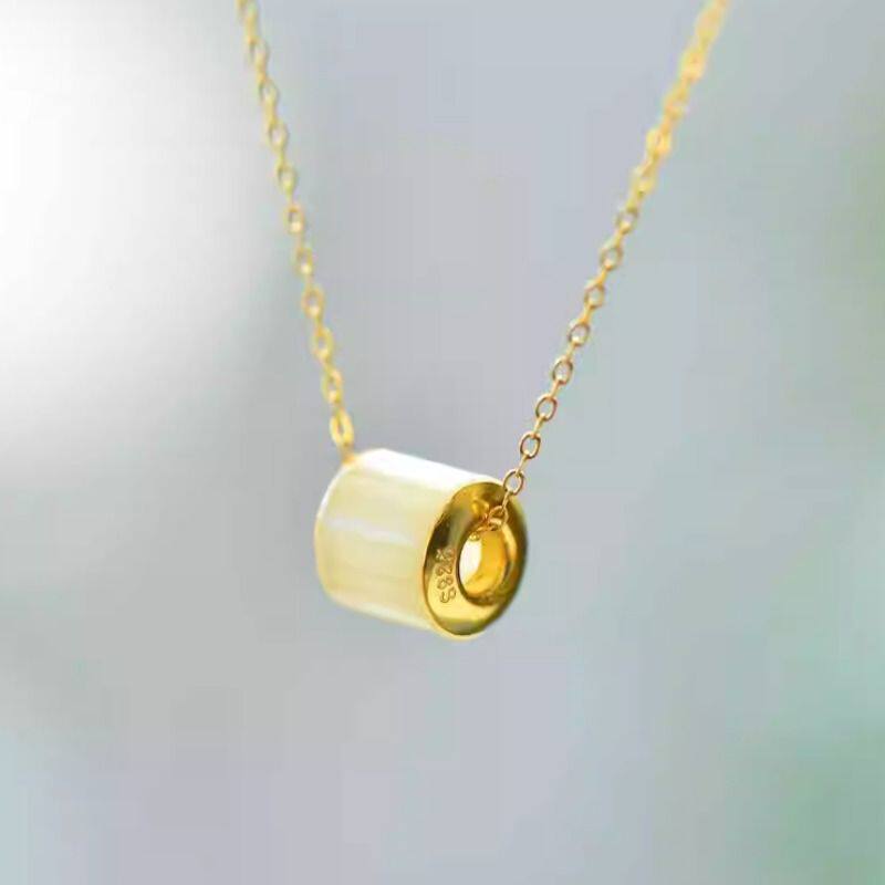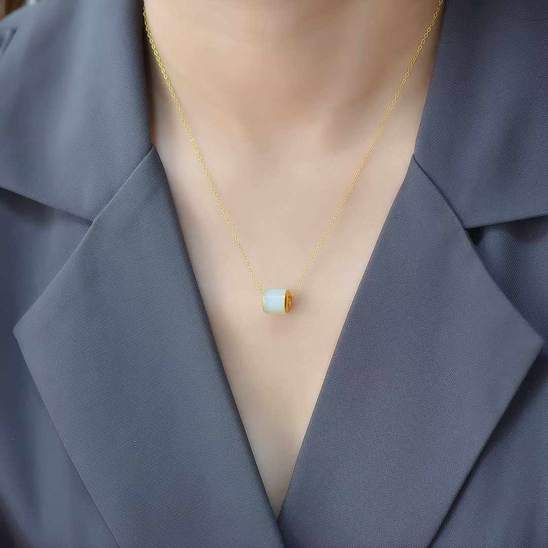 正品和田白玉路路通吊坠925银镶玉坠时尚精致气质转运珠锁骨项链