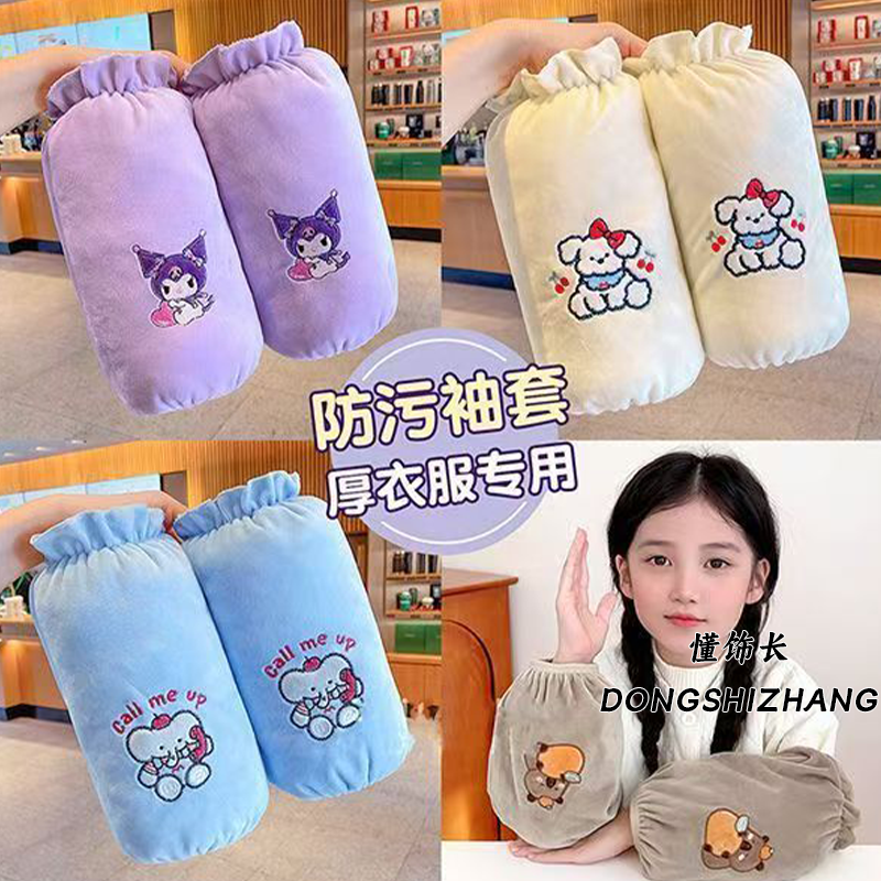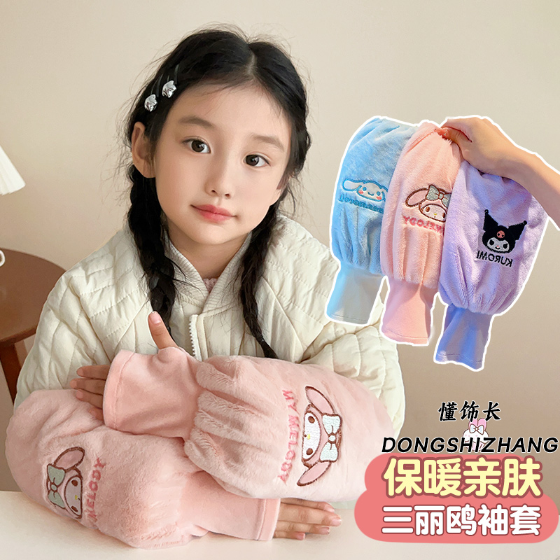 儿童手套袖套二合一保暖防脏防污女孩秋冬羽绒服护袖女童长款套袖