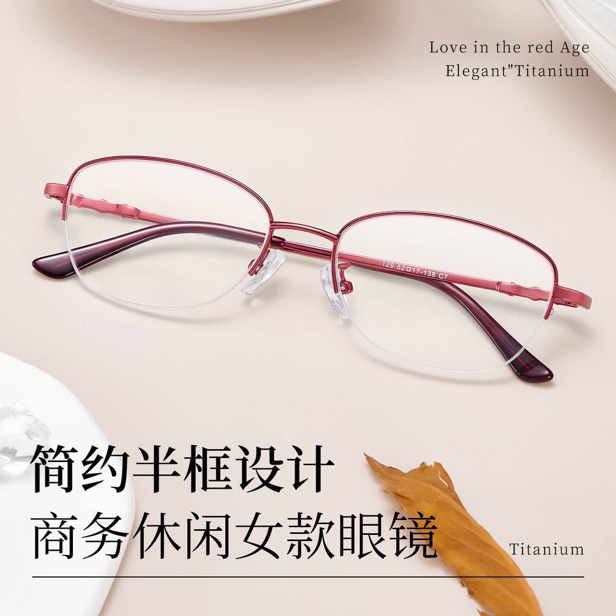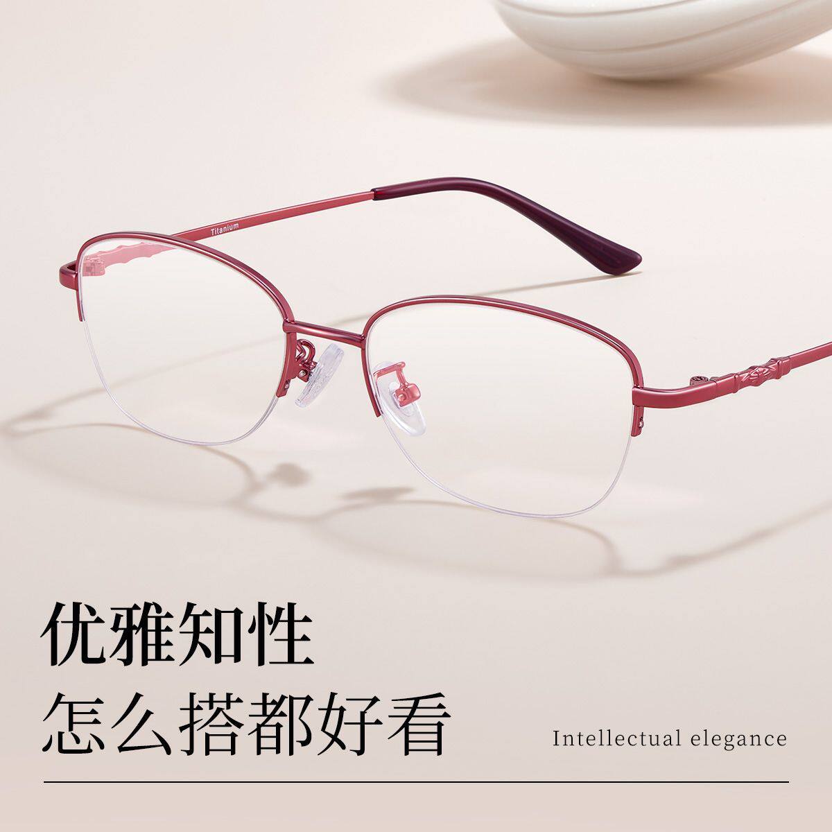 蔡司泽锐铂金膜镜片配优雅知性半框女眼镜框架配近视度数防蓝光W