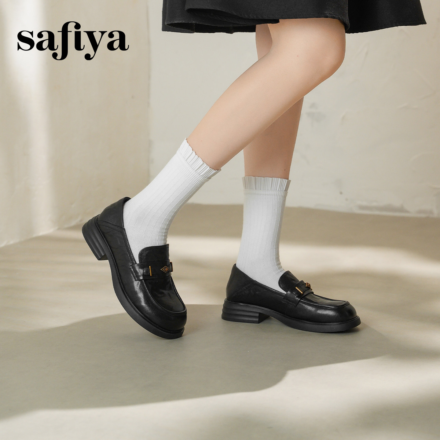 星期六真皮牛皮乐福鞋女鞋2025新款一脚蹬软底软面厚底英伦小皮鞋