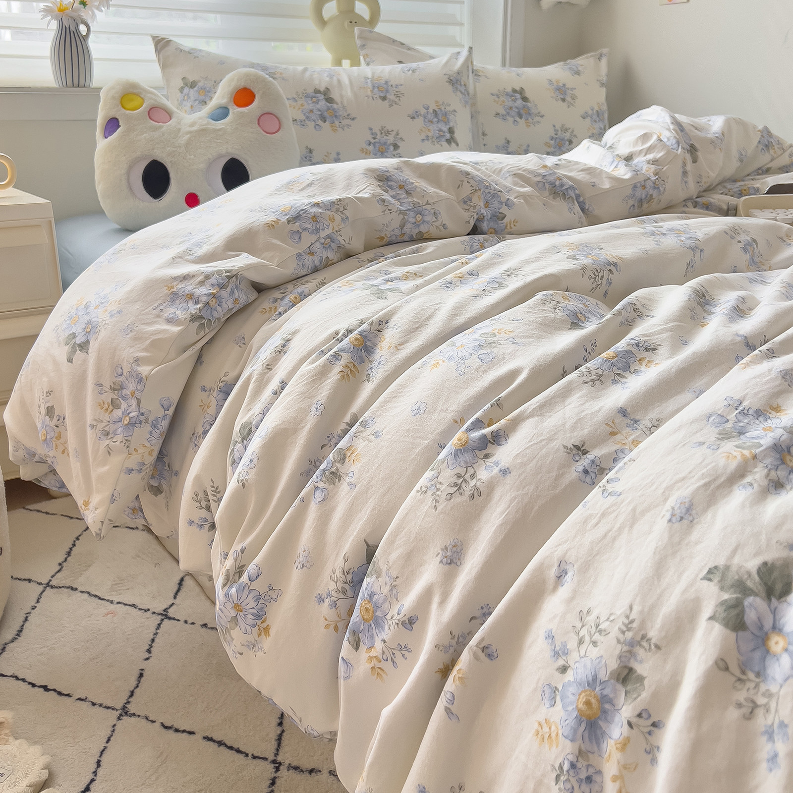 A类双层纱床上四件套纯棉全棉新款田园床单件被套被罩宿舍三件套4