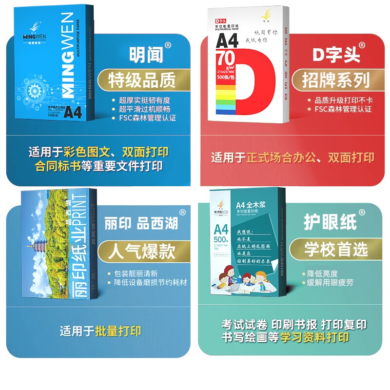 明闻打印纸复印纸A4纸整箱2500张500张70g加厚80g办公用纸草稿纸学生用公司批发