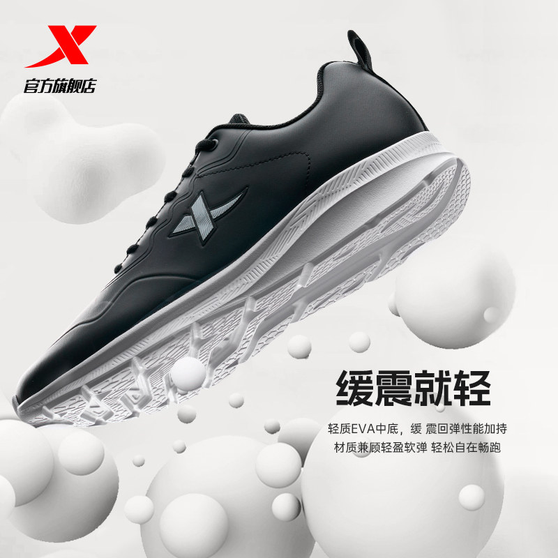 特步跑步鞋男鞋冬季新款黑色运动鞋皮面防泼水爸爸减震网面休闲鞋
