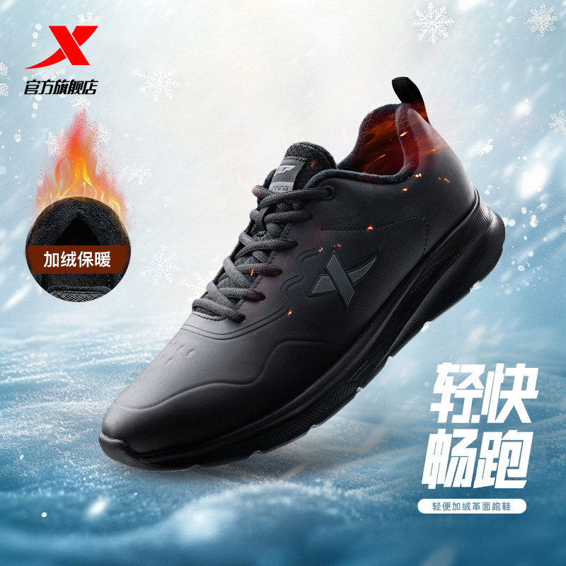 特步轻悦3丨减震轻便跑步鞋男鞋冬季新款皮面加绒运动鞋软底跑鞋