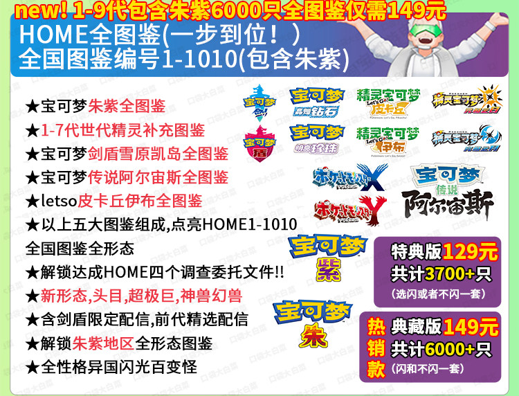 宝可梦朱紫剑盾精灵交换定制全图鉴pokemon home阿尔宙斯闪光神兽