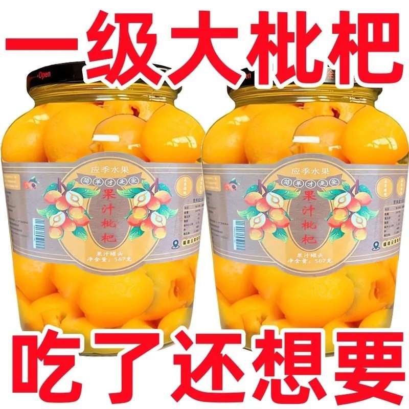 新鲜枇杷罐头现摘即食果肉水果罐头糖水琵琶现货商用大罐整箱应季