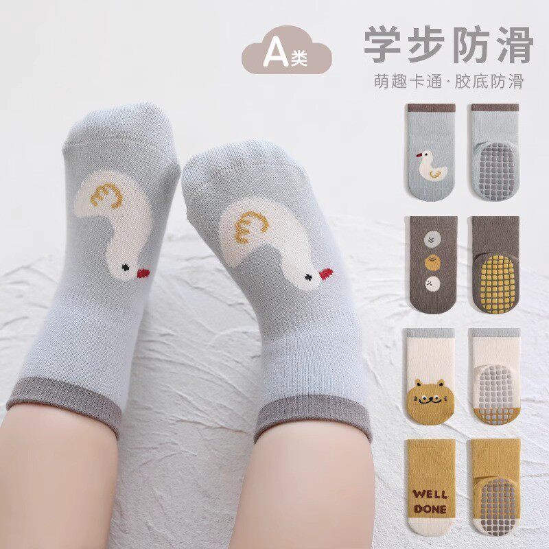 婴儿袜子春秋薄款地板袜男女童幼儿宝宝棉袜防滑学步袜纯棉中筒