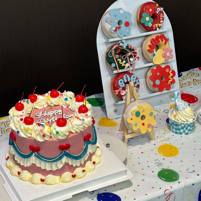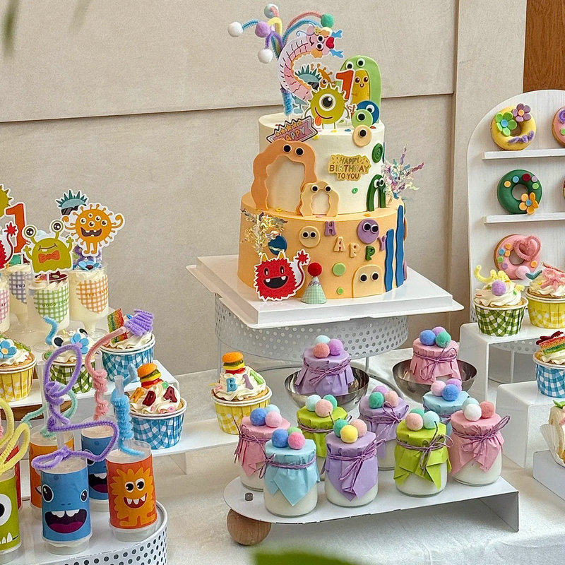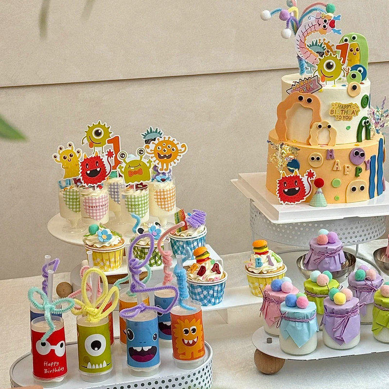 宝宝周岁蛋糕摆件甜品台多巴胺装饰插件推推乐筒贴纸布丁瓶封口纸
