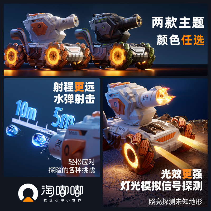 淘嘟嘟礼物儿童遥控汽车3可发射水弹坦克6四驱越野玩具车男孩电动