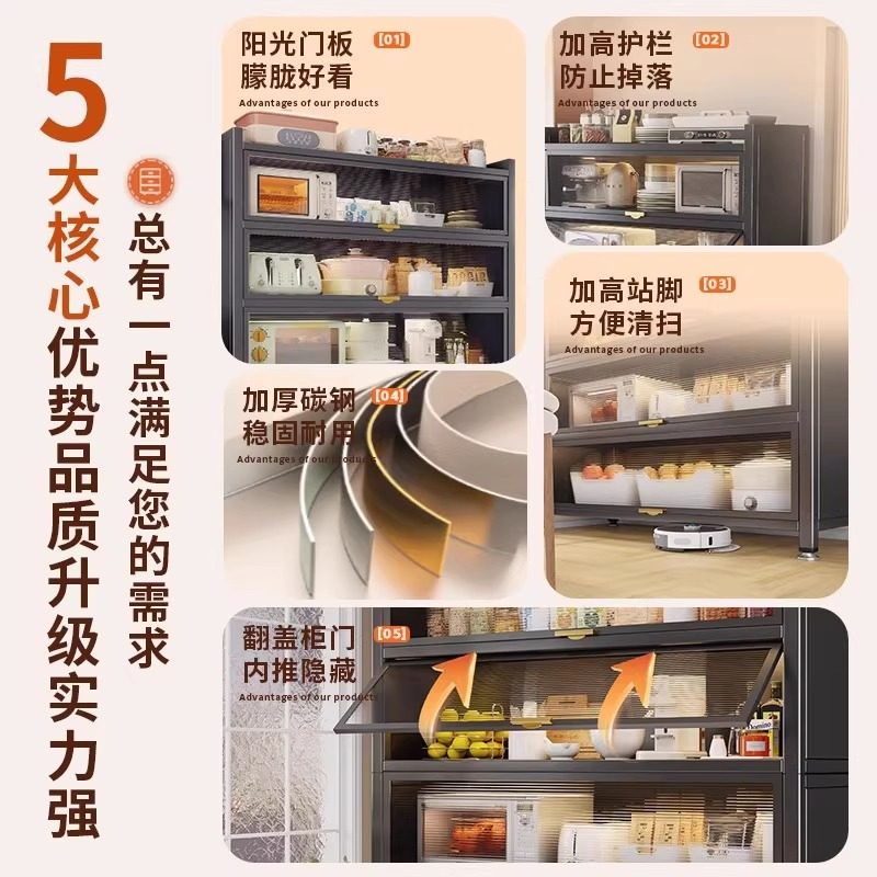置物架家用落地储物柜橱柜收纳柜多功能餐边柜碗柜书柜图书馆碳钢