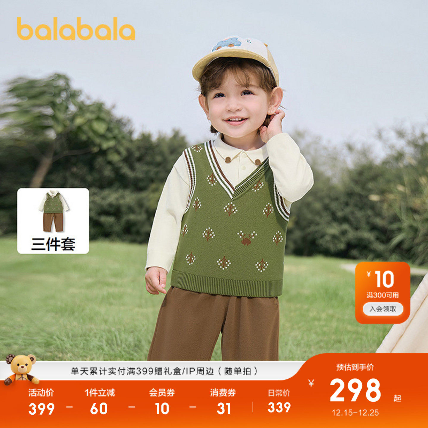 【商场同款】巴拉巴拉宝宝套装女童三件套2025新款秋冬装萌趣礼物