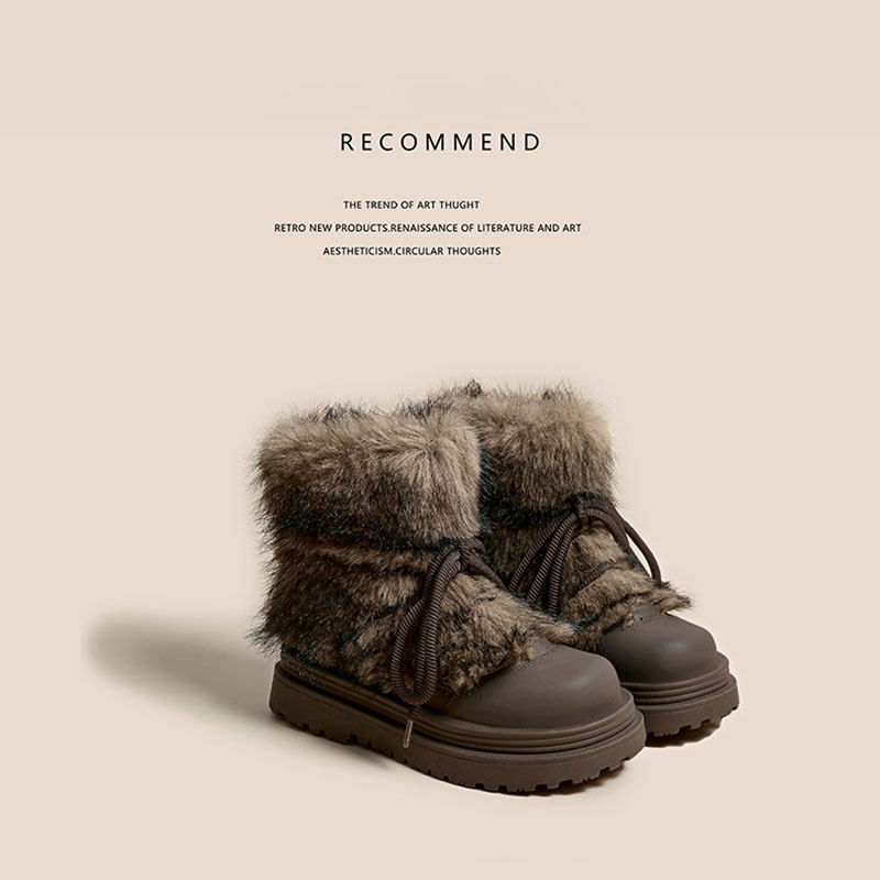 毛毛靴防滑雪地靴女秋冬加厚保暖中筒棉鞋厚底增高短靴子防水白色