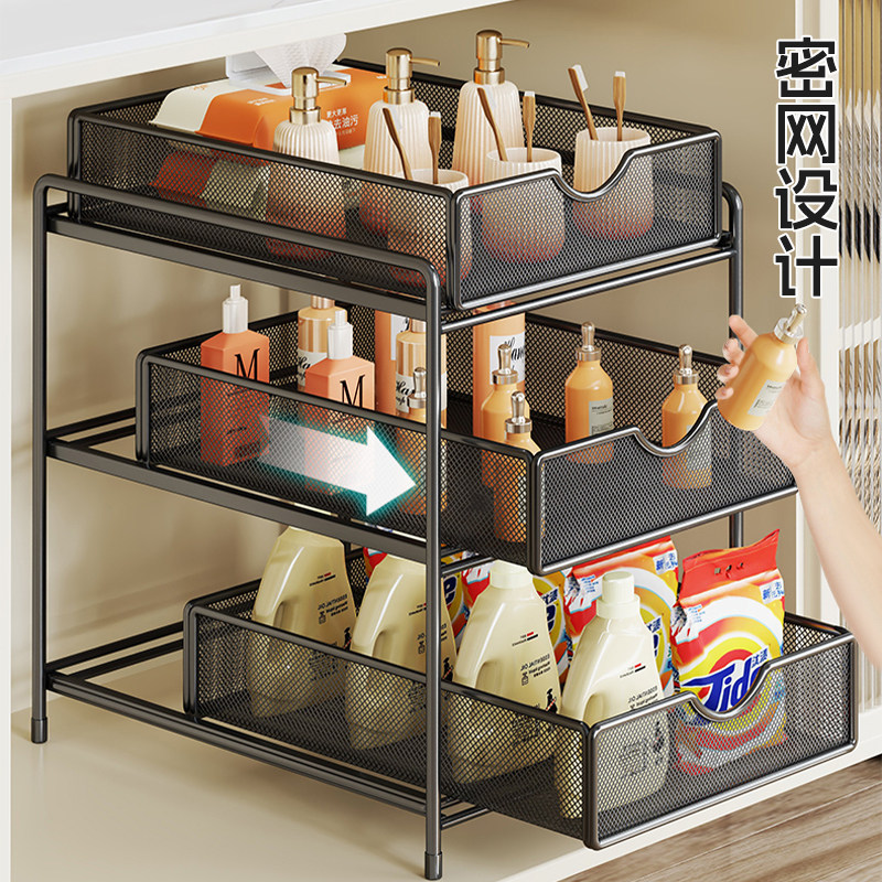 下水槽置物架厨房抽拉式整理架橱柜下多层收纳神器抽屉拉篮分层