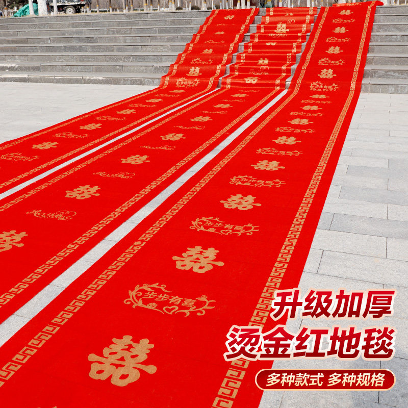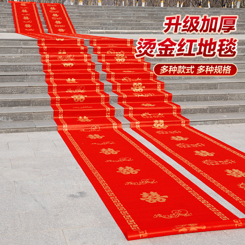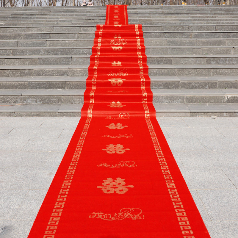 结婚红地毯一次性楼梯门口加厚无纺布喜字婚庆用品红色大地毯
