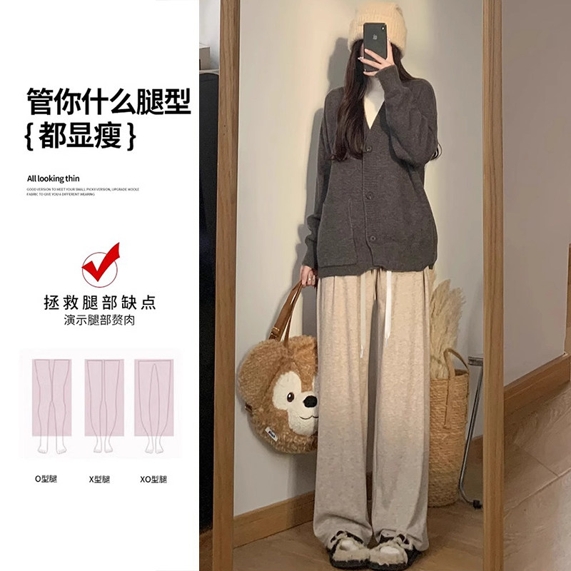 婧麒孕妇裤子春秋款外穿针织阔腿裤不勒肚子大码直筒拖地裤孕妇装