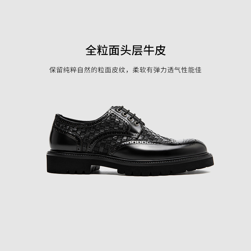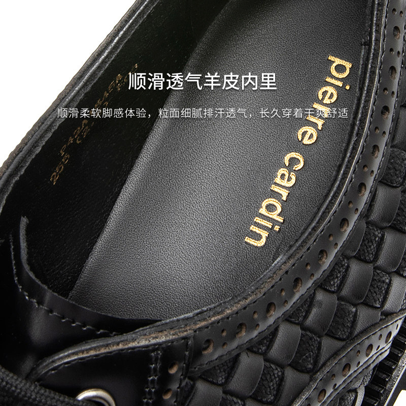 Pierre Cardin/皮尔卡丹25男编织拼接元素风布洛克鞋真皮皮鞋轻底