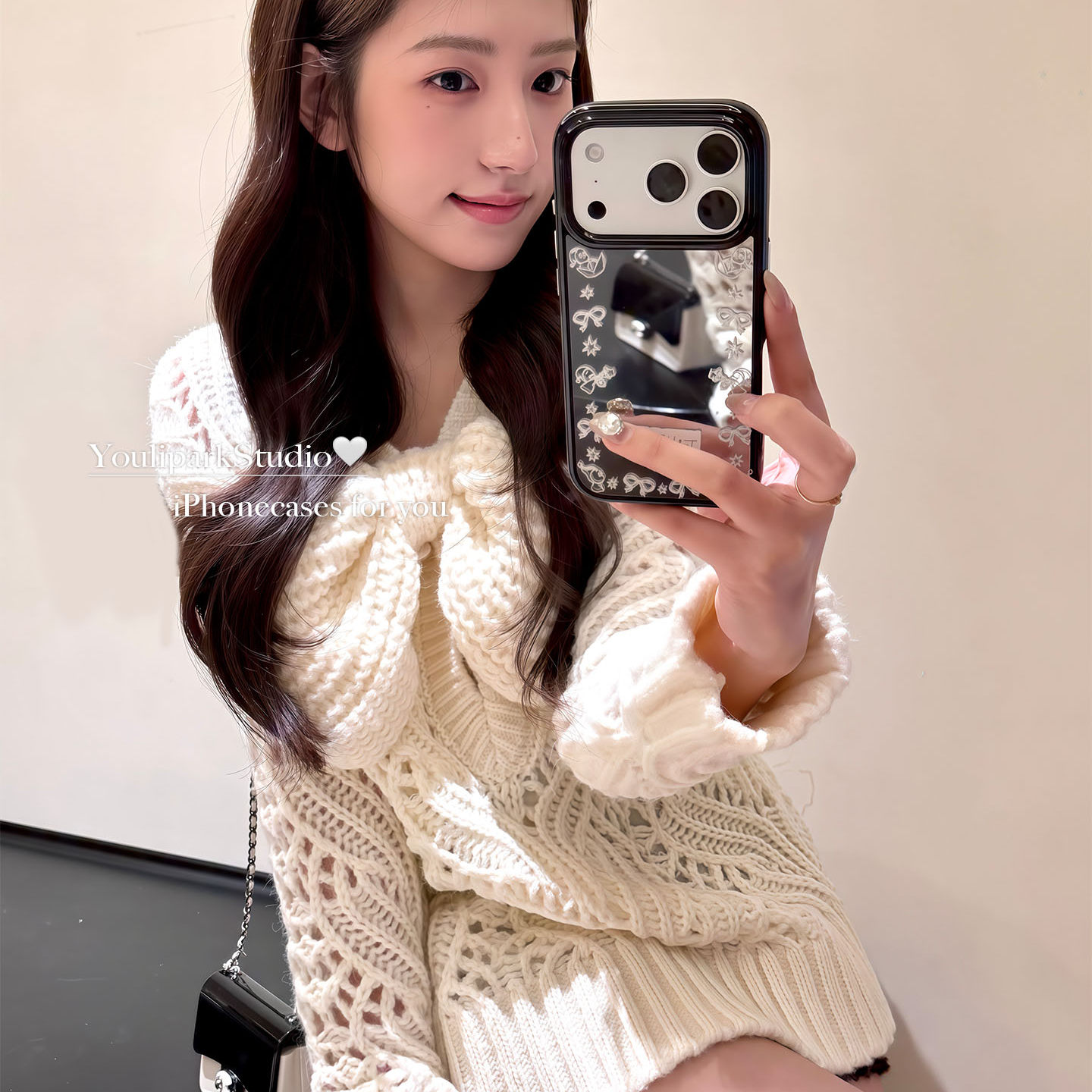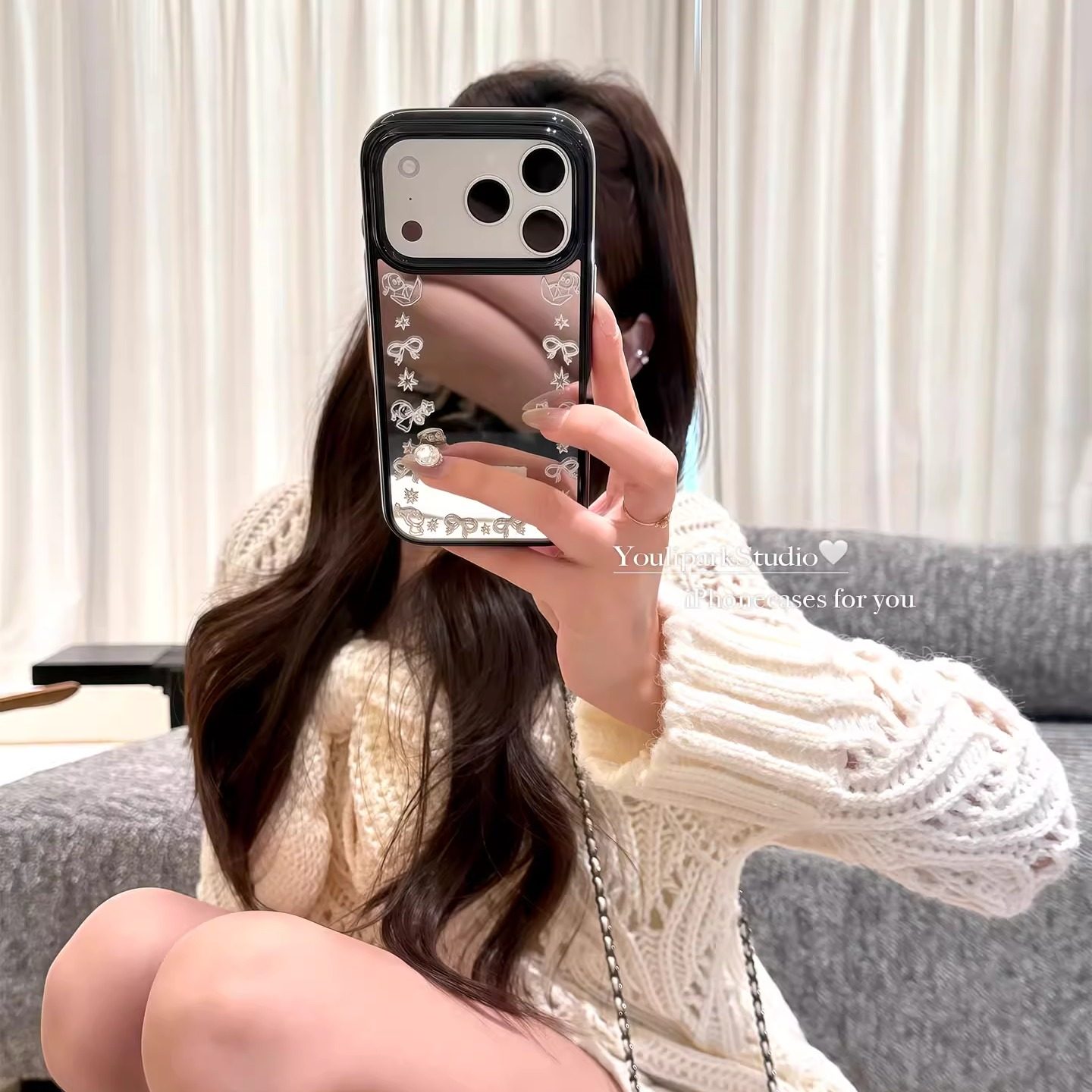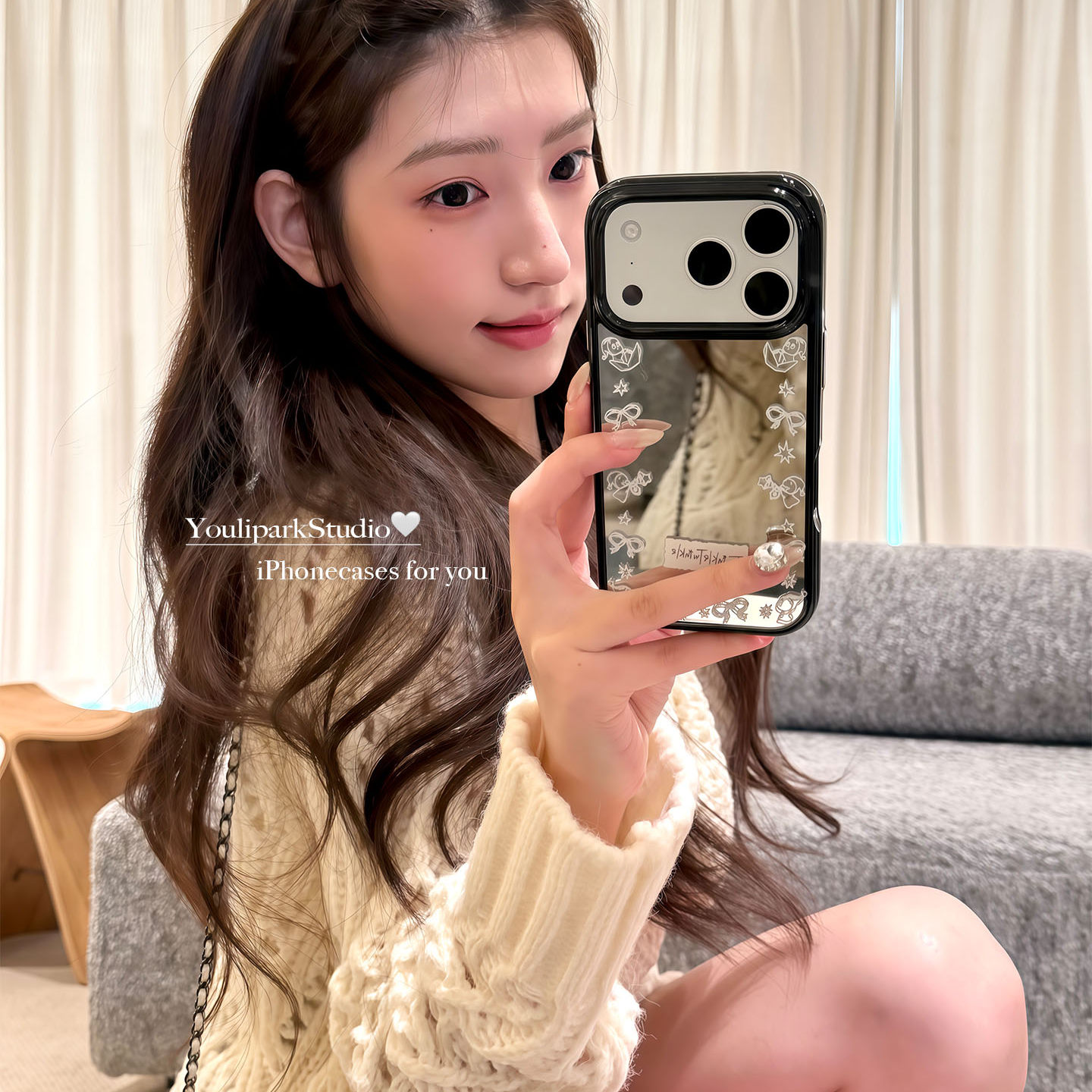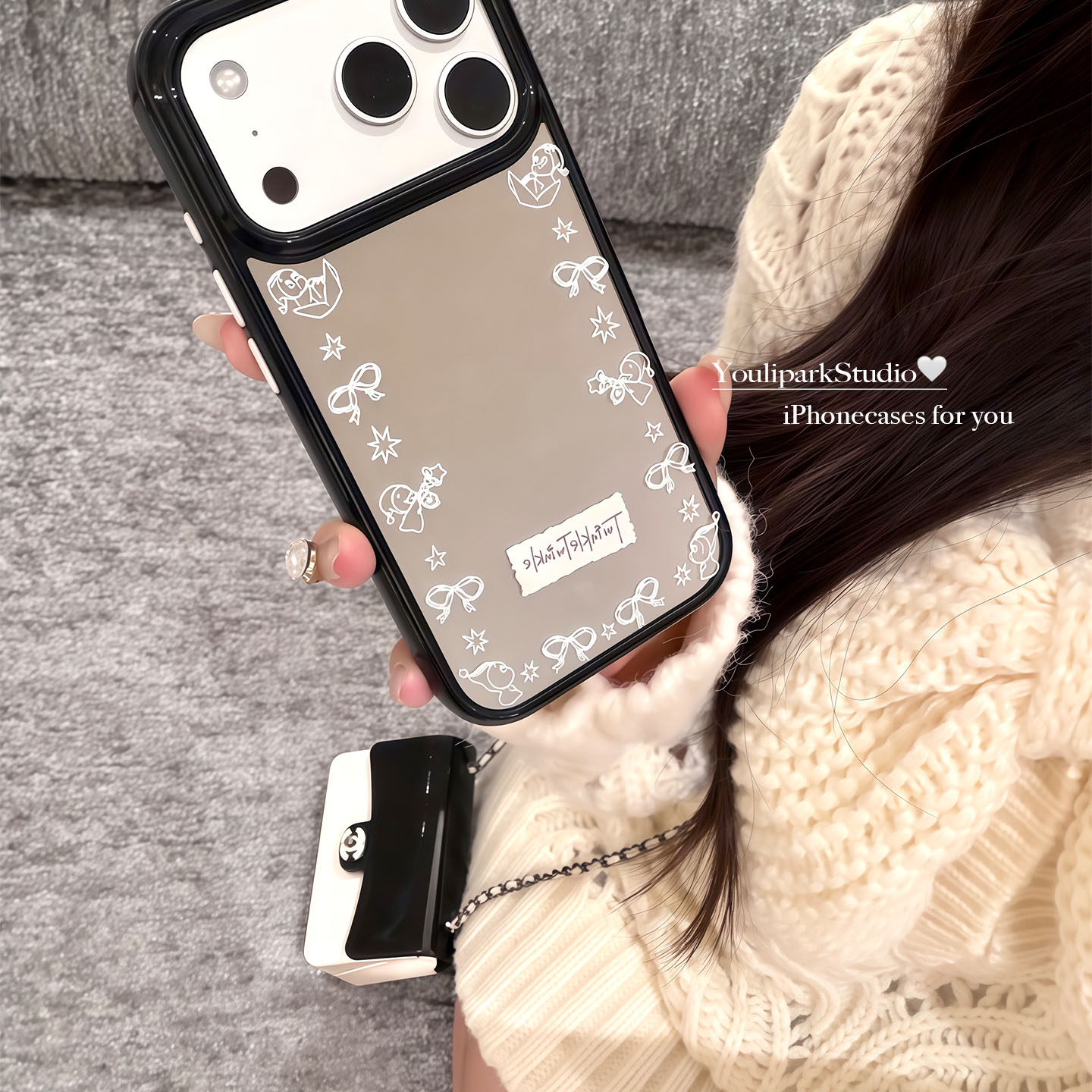 由里公园ins可爱镜面线条星星人蝴蝶结17适用17pro苹果17ProMax手机壳iPhone16全包14新款16Promax保护套13女