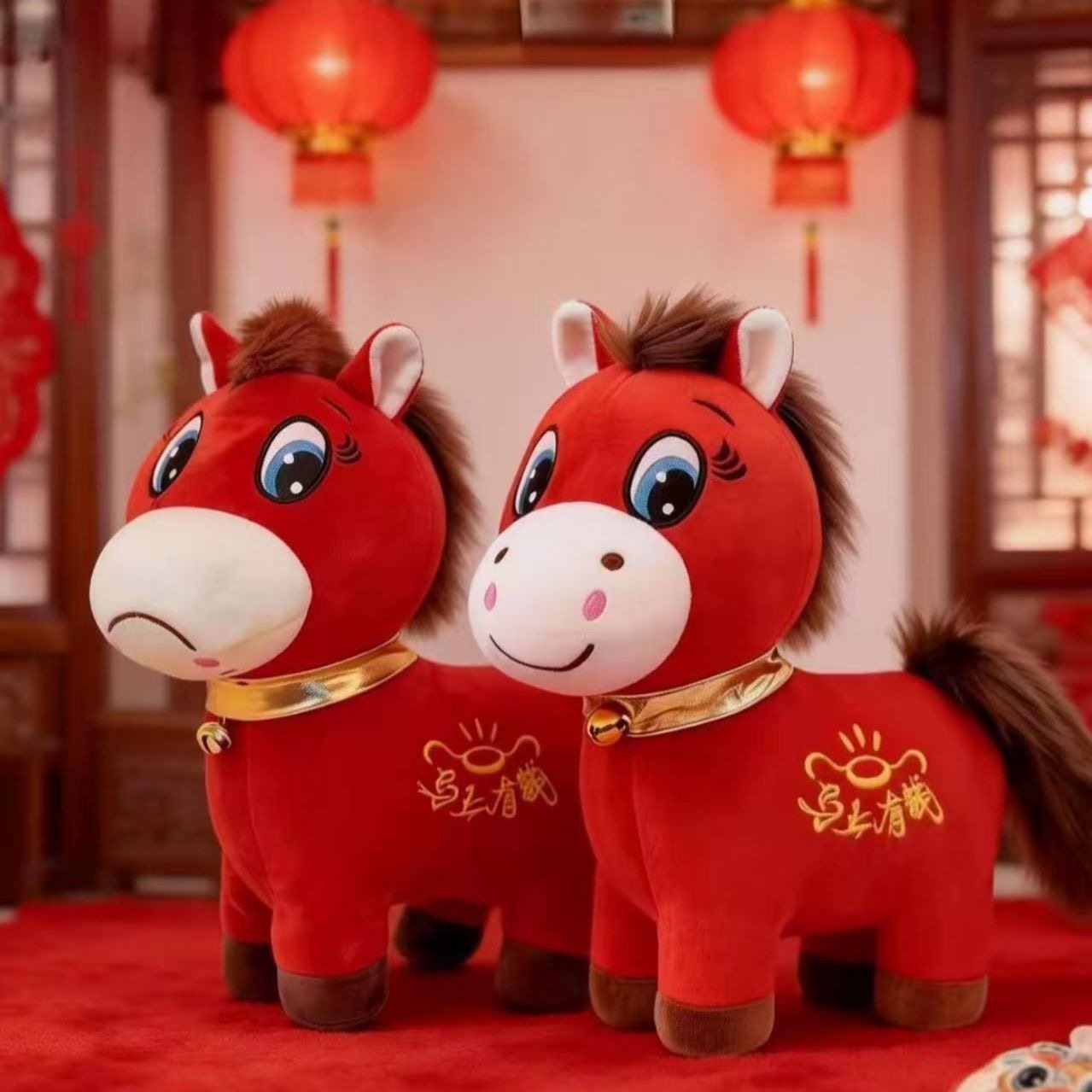 马年吉祥物公仔毛绒玩具红色生肖马玩偶摆件新年活动礼物定制Logo