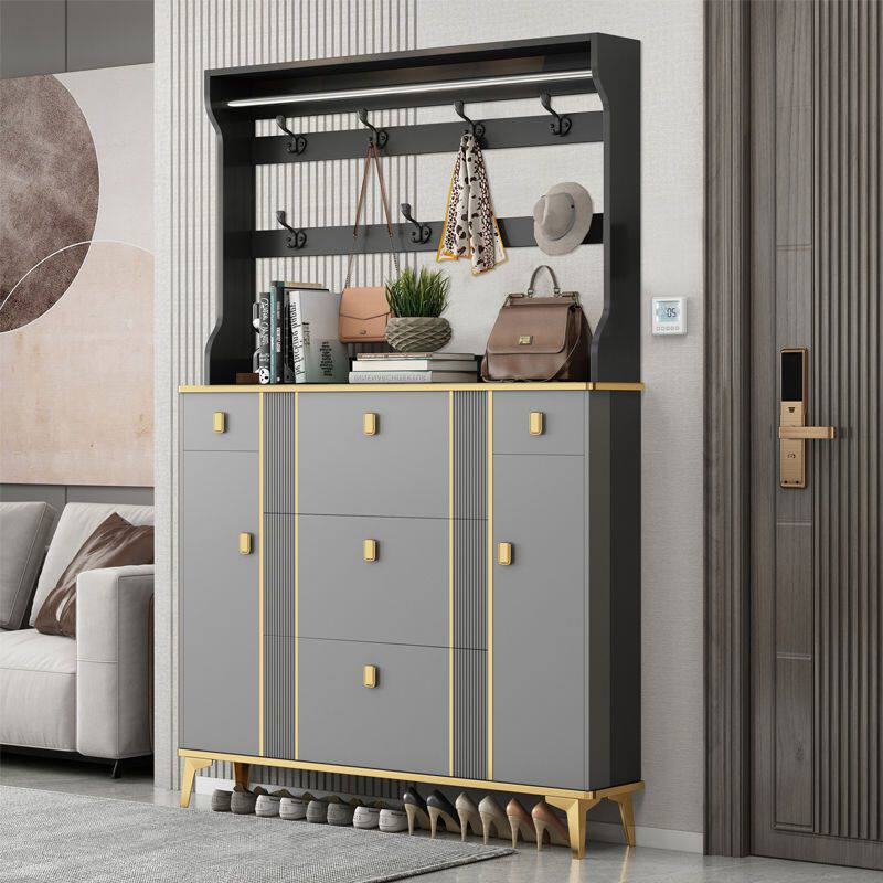 d轻奢鞋柜带挂衣架一体家用门口靠墙多功能玄关柜小户型储物窄鞋